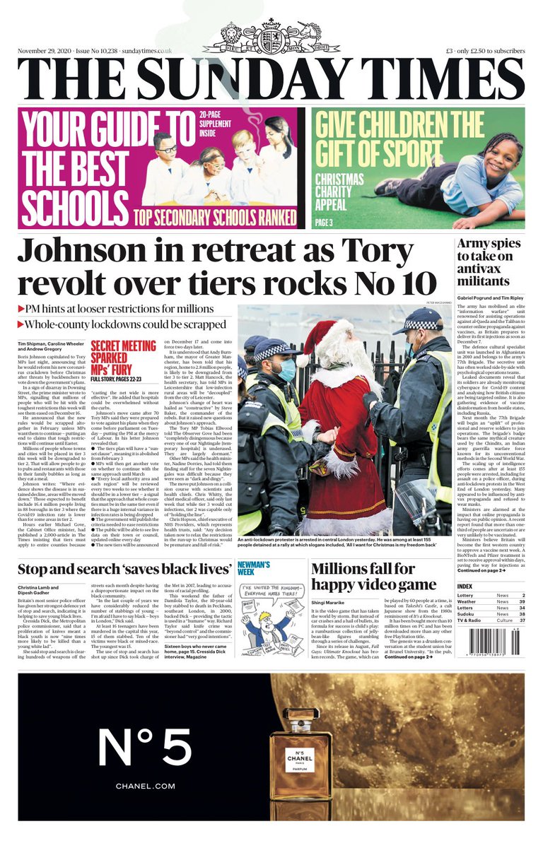 As well as an eight-page souvenir marking Charlton’s death, the Sunday Times offers a front-page appreciation from writer David Walsh who recalls that the footballing giant’s World Cup team-mate Bobby Moore had labelled him the team’s “big giraffe”. The paper leads on reports that home secretary Priti Patel fears “cultural sensitivities” have prevented police from tackling illegal sweatshops in Britain’s fast fashion industry amid concerns they would be accused of racism.