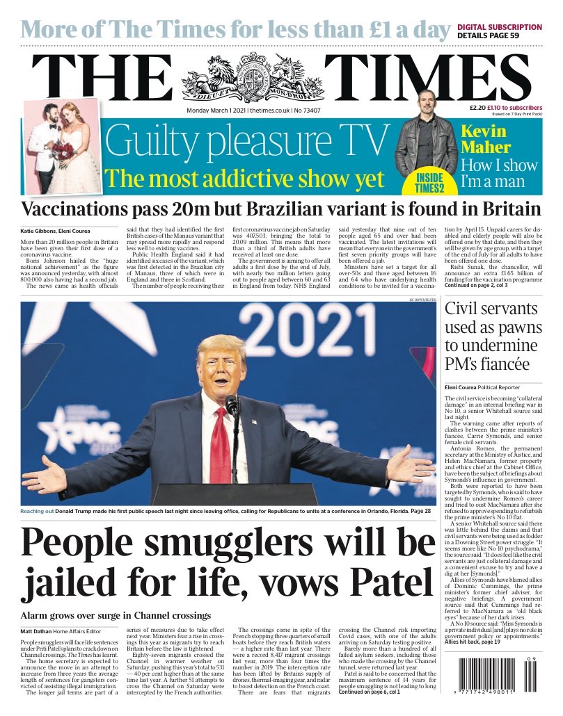 The Times adds that Downing Street has said that Mr Johnson’s priorities in easing lockdown reflect his concern that the pandemic has been particularly hard on children and those unable to see loved ones. Meanwhile, Health Secretary Matt Hancock has said that Britain should follow Australia in requiring Facebook to pay for news content that it hosts.