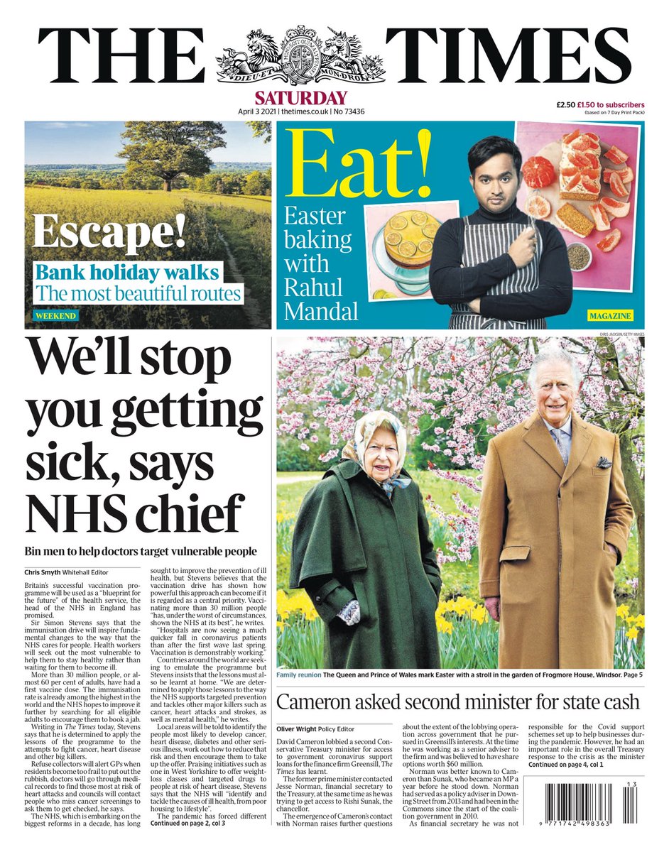 The head of NHS England has said the coronavirus vaccination drive will inspire fundamental changes to the way the NHS cares for people, the Times reports. Sir Simon Stevens said he wants to apply the lessons of the programme to be used as a “blueprint” to the way illnesses such as cancer and heart disease are tackled, with health workers seeking out the most vulnerable.