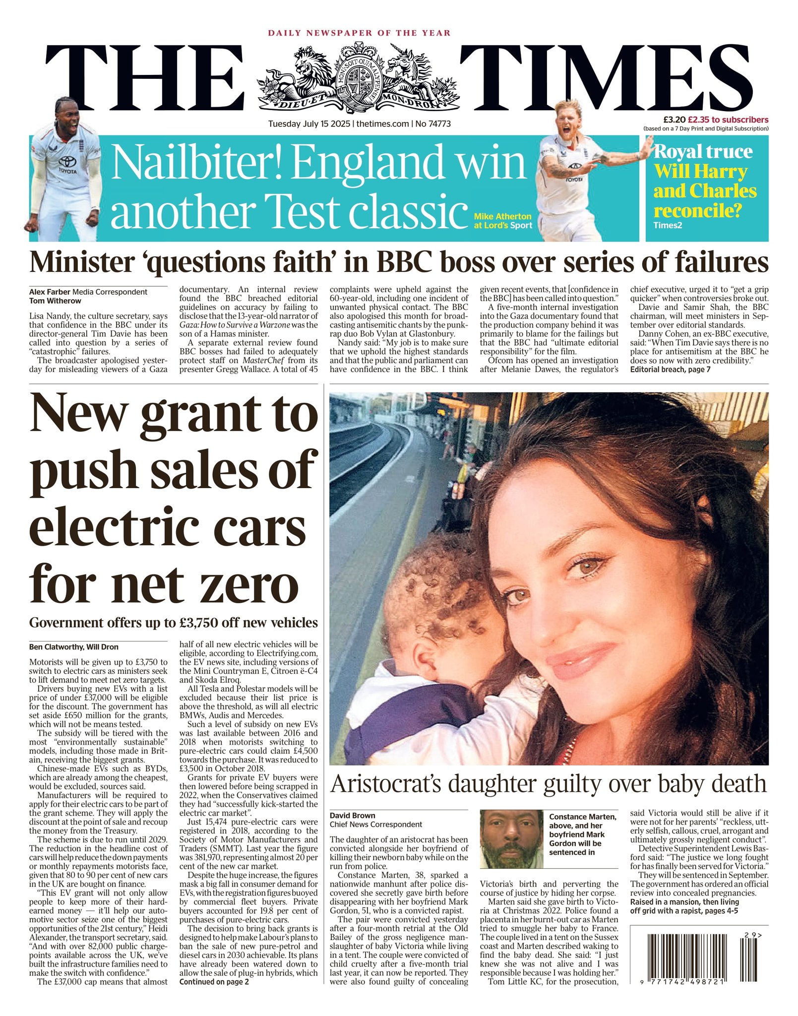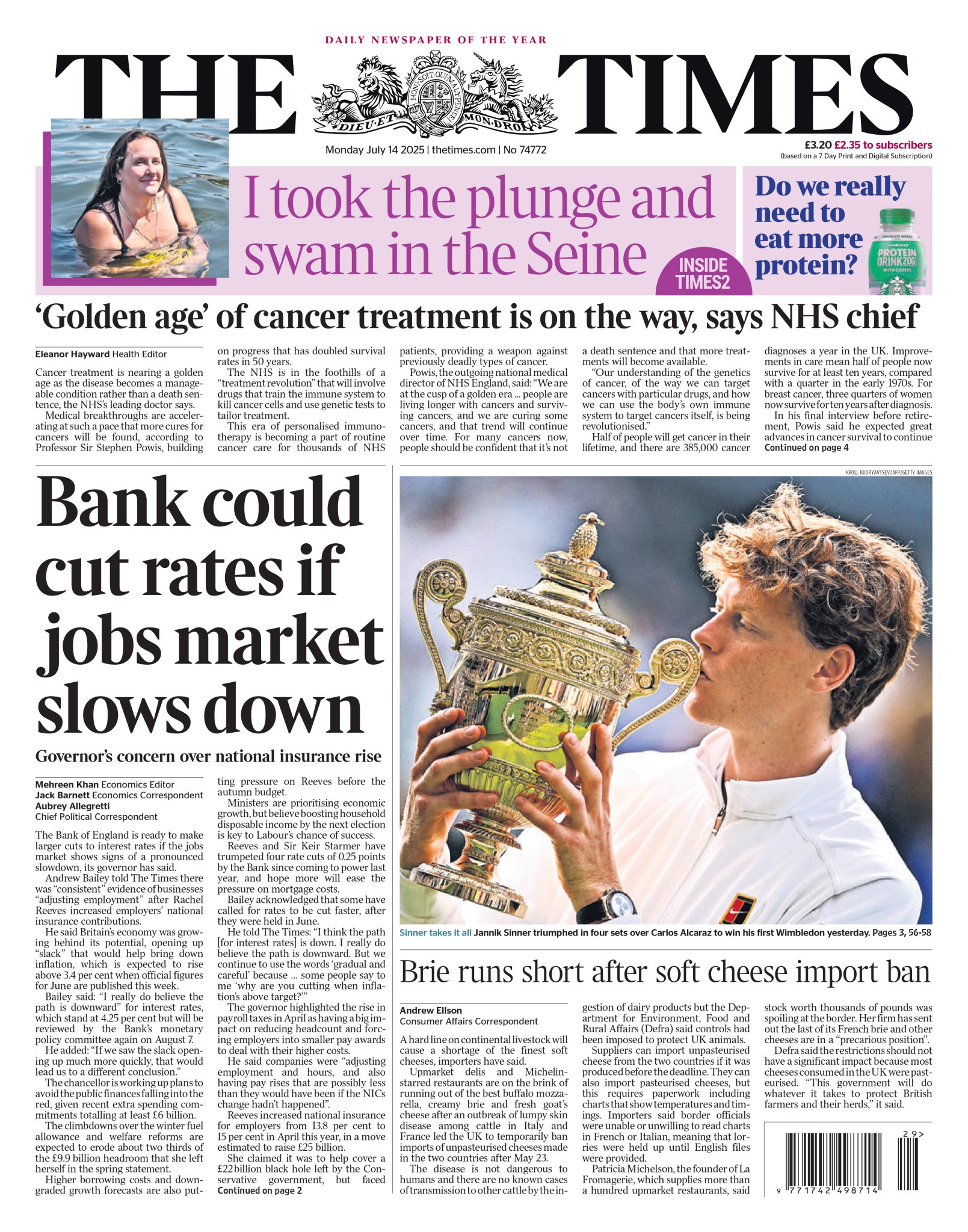 The Times says that cabinet ministers are demanding action from the chancellor to stave off recession. The paper says Rishi Sunak is under “mounting pressure” to implement radical tax cuts following the Bank’s warning. The front page also carries a picture of model Corgis created to take part in the Platinum Jubilee pageant.