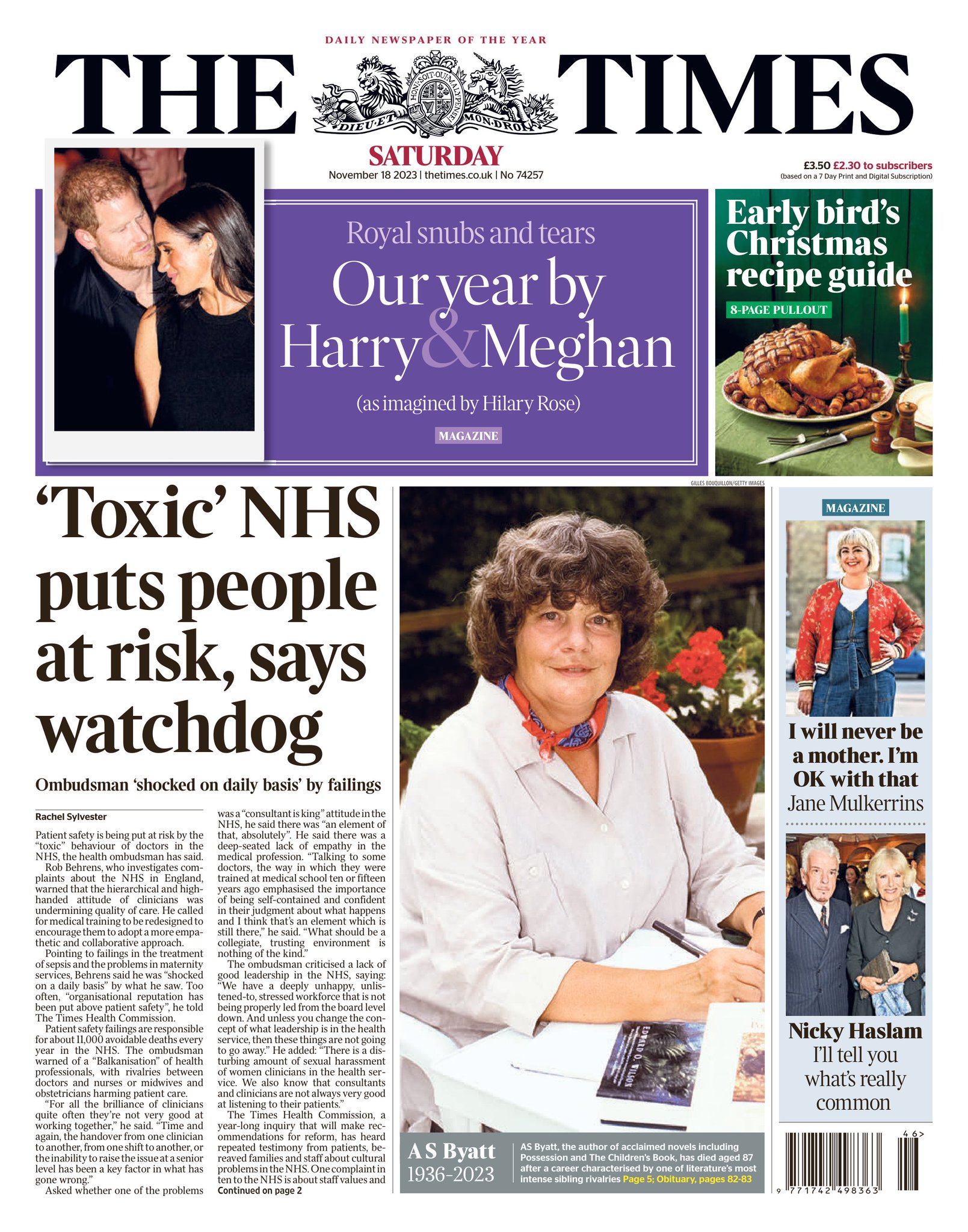A hard-hitting report on the current state of the NHS in England – which says the “toxic” behaviour of doctors is putting patients at risk- provides an eye-catching lead story for the Times. Rob Behrens, who investigates complaints about the NHS, calls in his report for medical training to be redesigned to encourage new medics to be more empathetic. He also warns of a “Balkanisation” of health workers with “rivalries between doctors and nurses or midwives and obstetricians harming patient care”.