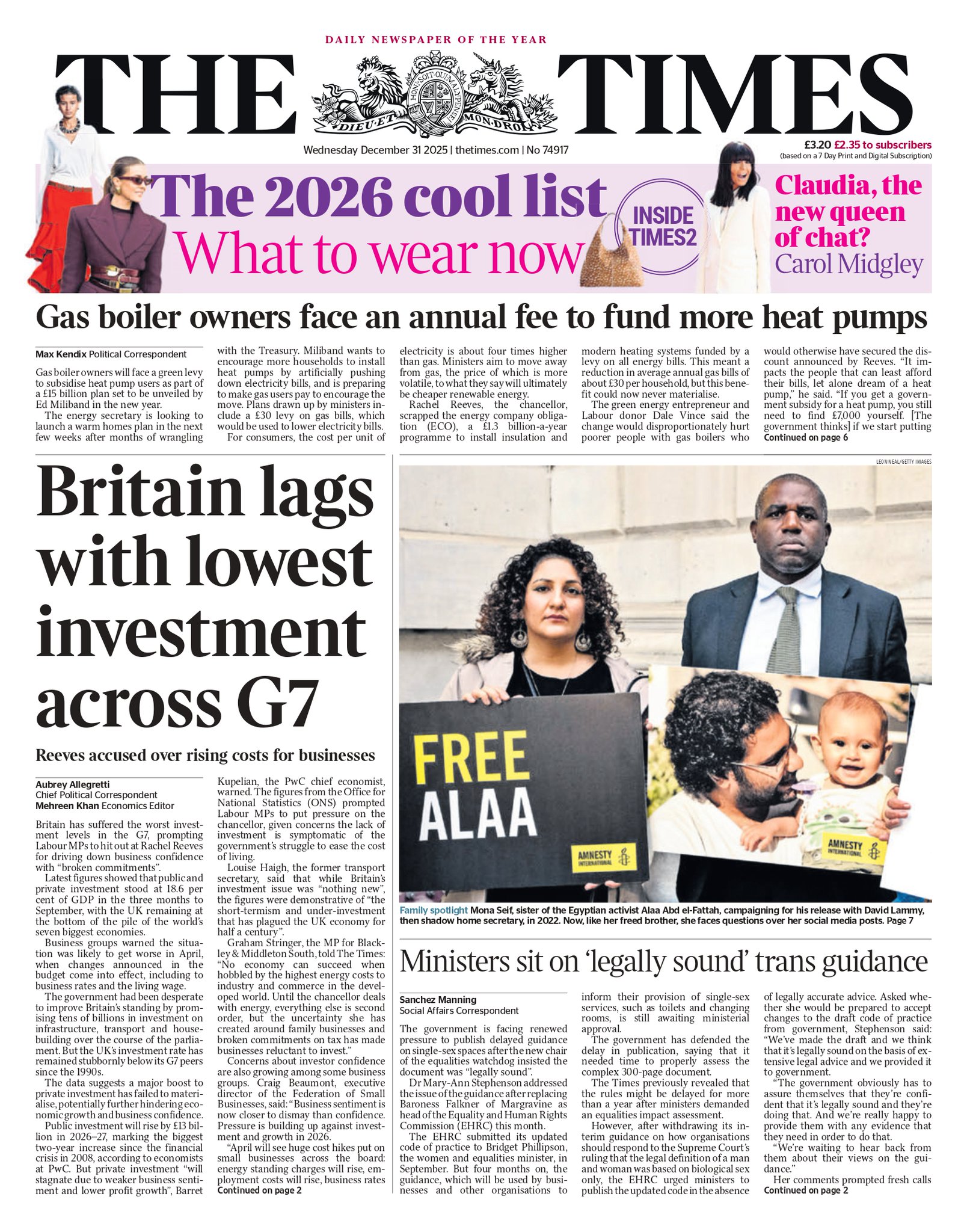 Times Front Page 31st of December 2025