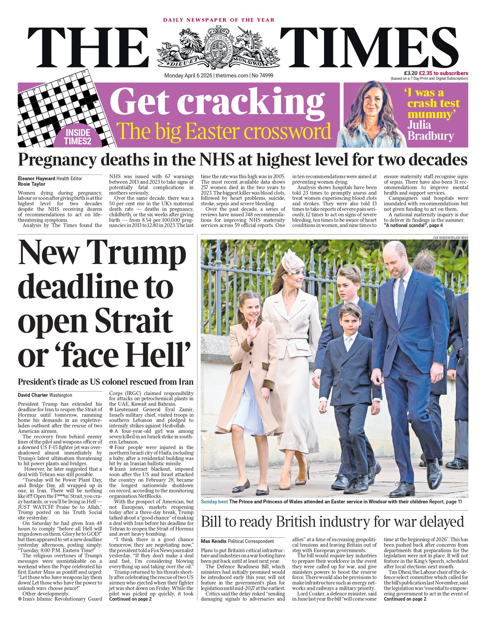Times Front Page 6th of April 2026
