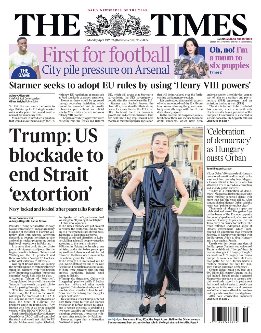 Times Front Page 13th of April 2026