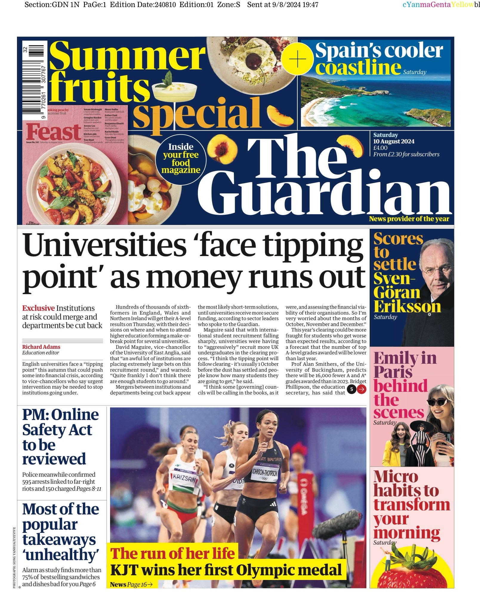 The Daily Express highlights King Charles’ appeal for unity following recent anti-immigrant riots in the UK.