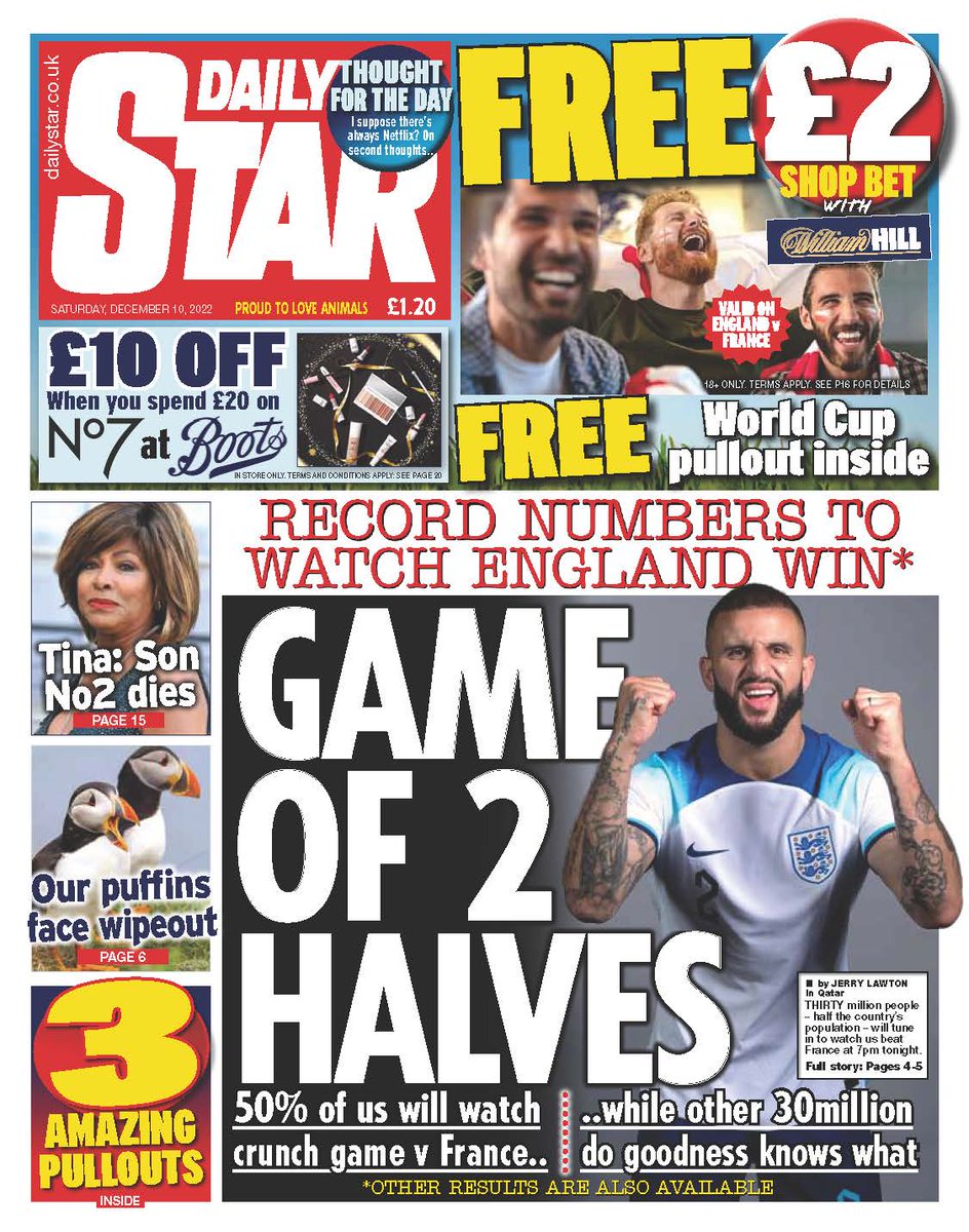 According to the Daily Star, 30 million people are expected to watch England play France in the World Cup.