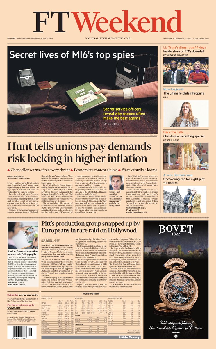 Chancellor Jeremy Hunt warns unions that high pay demands would harm Britain’s fight against inflation.