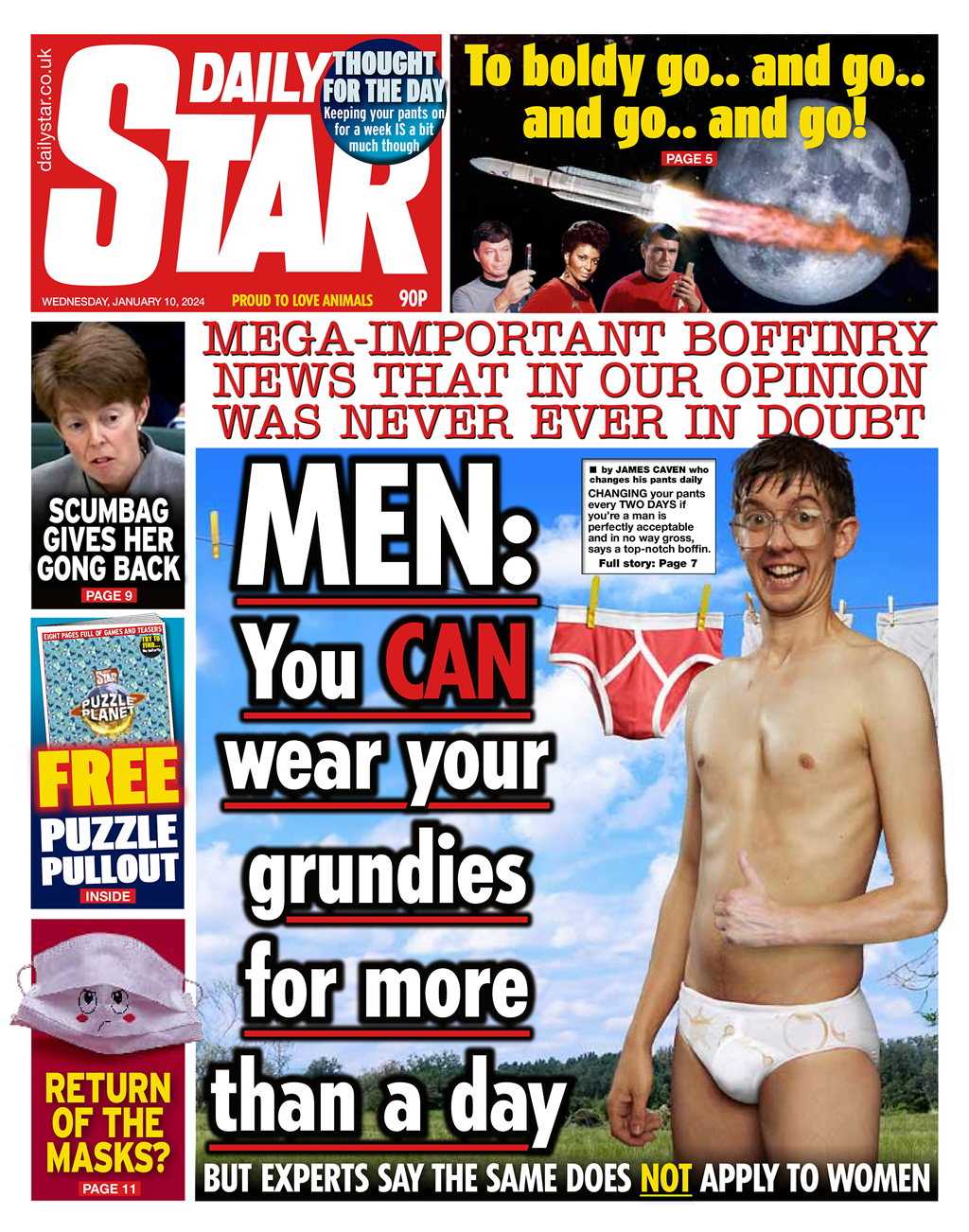 The Daily Star reports that it’s perfectly fine for men to change their underpants every two days.