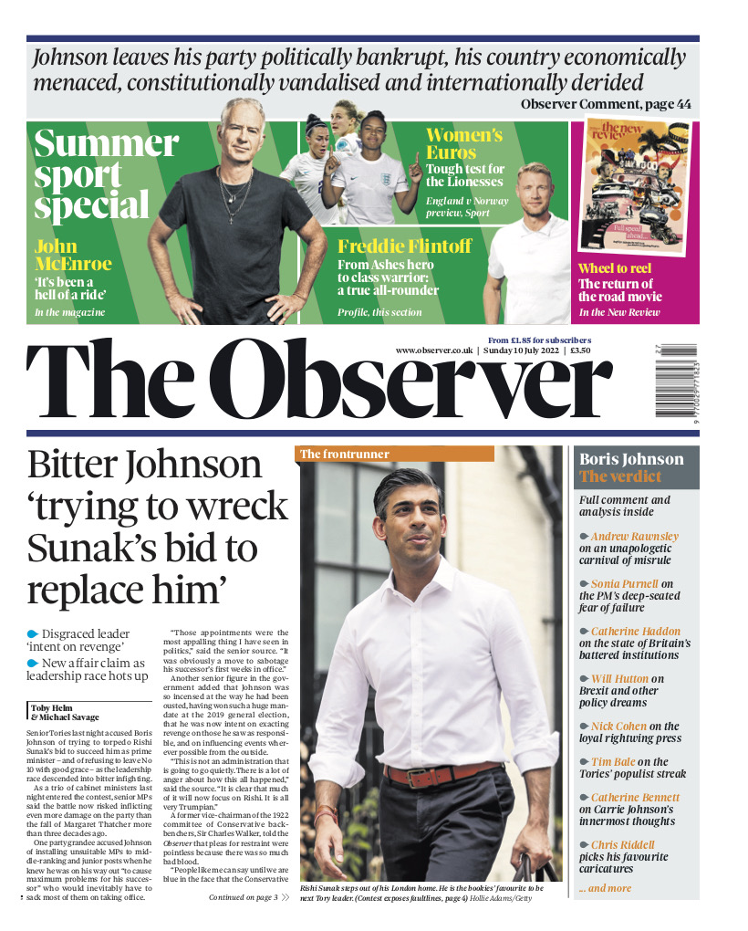 Observer claims Boris Johnson is sabotaging Rishi Sunak’s bid to succeed him.
