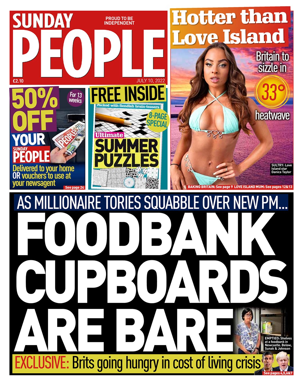 According to The Sunday People, foodbanks are almost empty as Britons go hungry.
