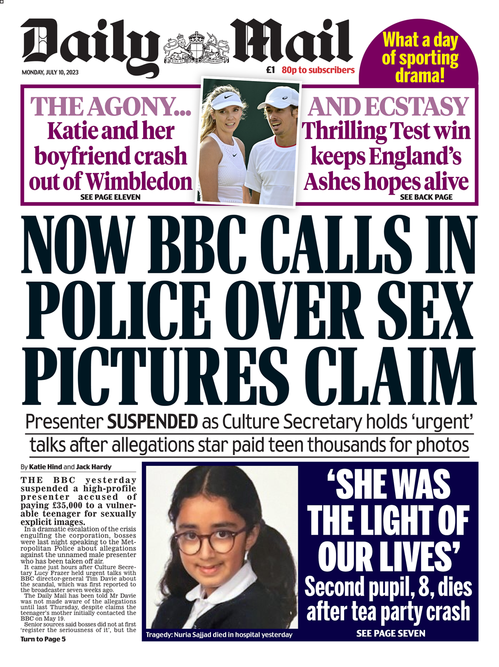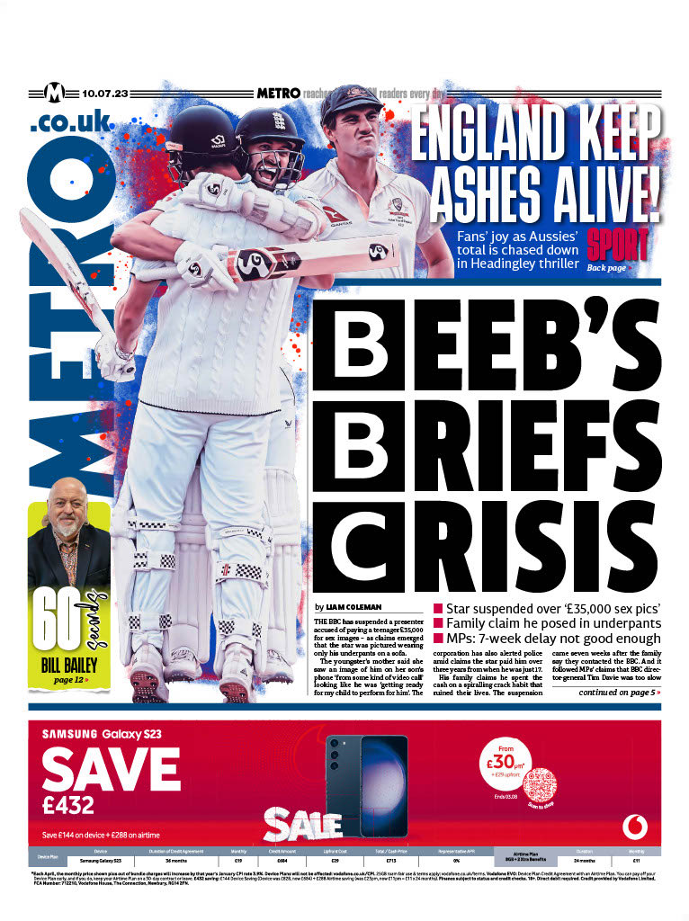 The Daily Mirror reports on the scandal involving a now-suspended BBC presenter.