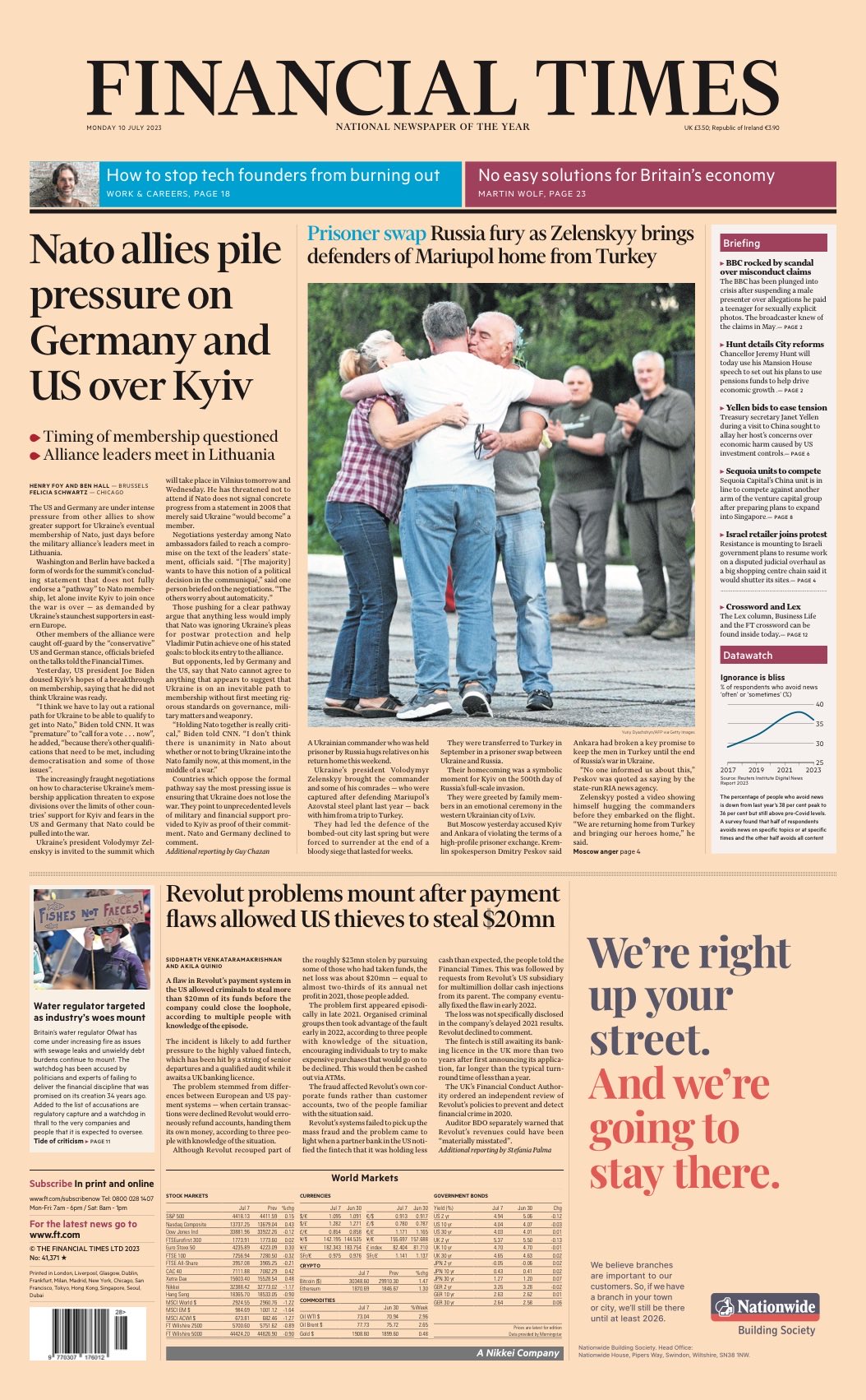 The Financial Times covers Ukraine’s push for NATO membership and the pressure on the US and Germany to show more support for this potential move.