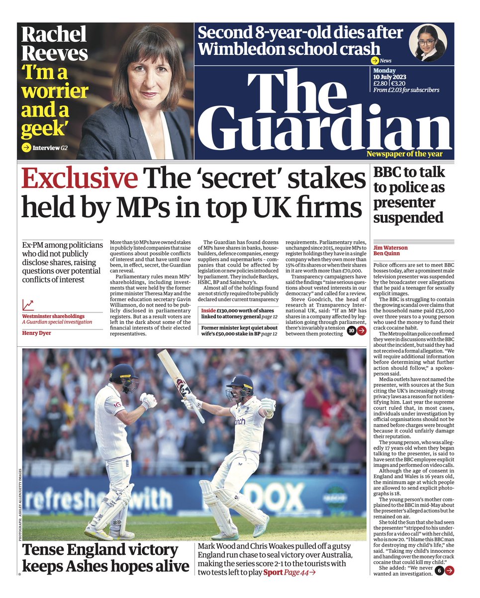 The Guardian uncovers an investigation suggesting over 50 MPs hold undisclosed stakes in publicly-listed companies.