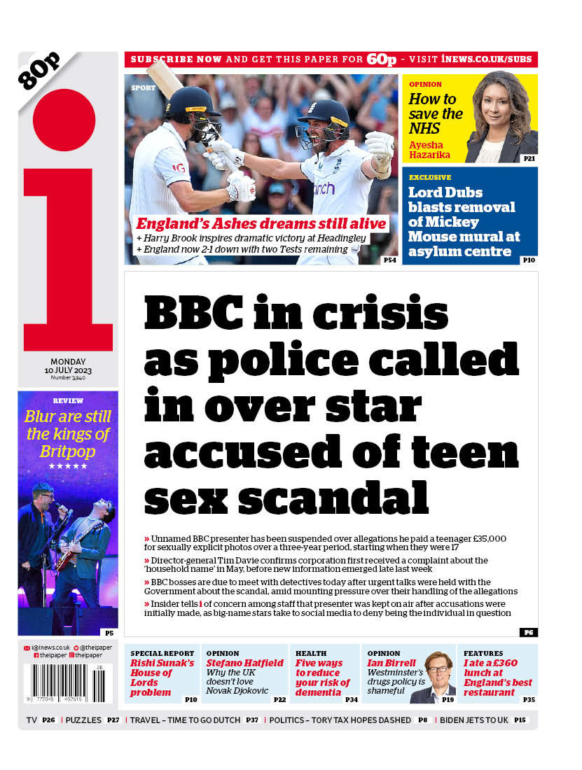 The i notes the crisis at the BBC following the involvement of the police in the ongoing investigation.