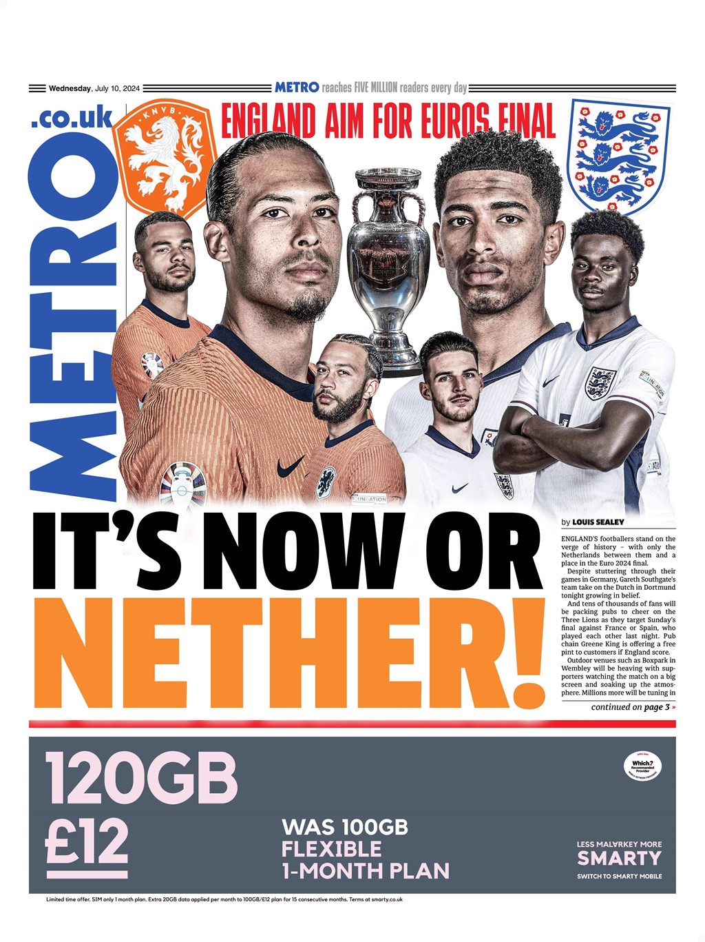 England’s footballers are on the brink of making history, with only the Netherlands standing in their way to the Euro 2024 final, Metro reports.