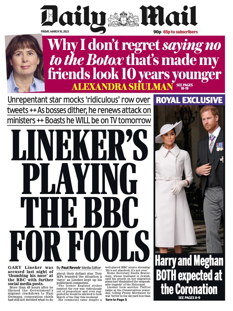 According to the Daily Express, the BBC should force Gary Lineker to apologise for a tweet criticising the government’s asylum policy.