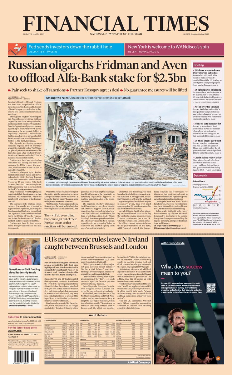In an effort to escape western sanctions, two Russian billionaires are planning to sell their stake in Alfa-Bank for $2.3 billion.