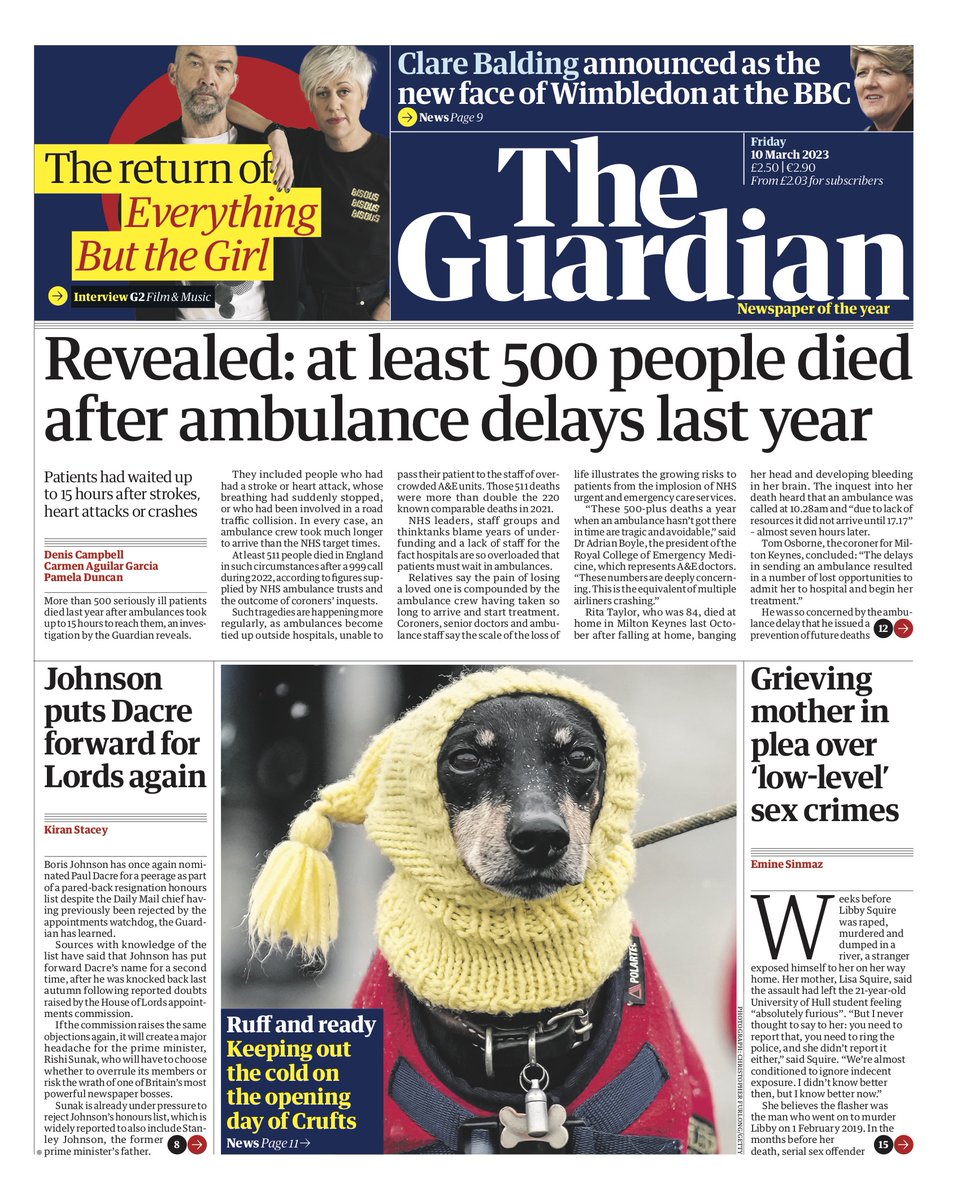 Last year, at least 500 people died after ambulance delays, according to The Guardian.