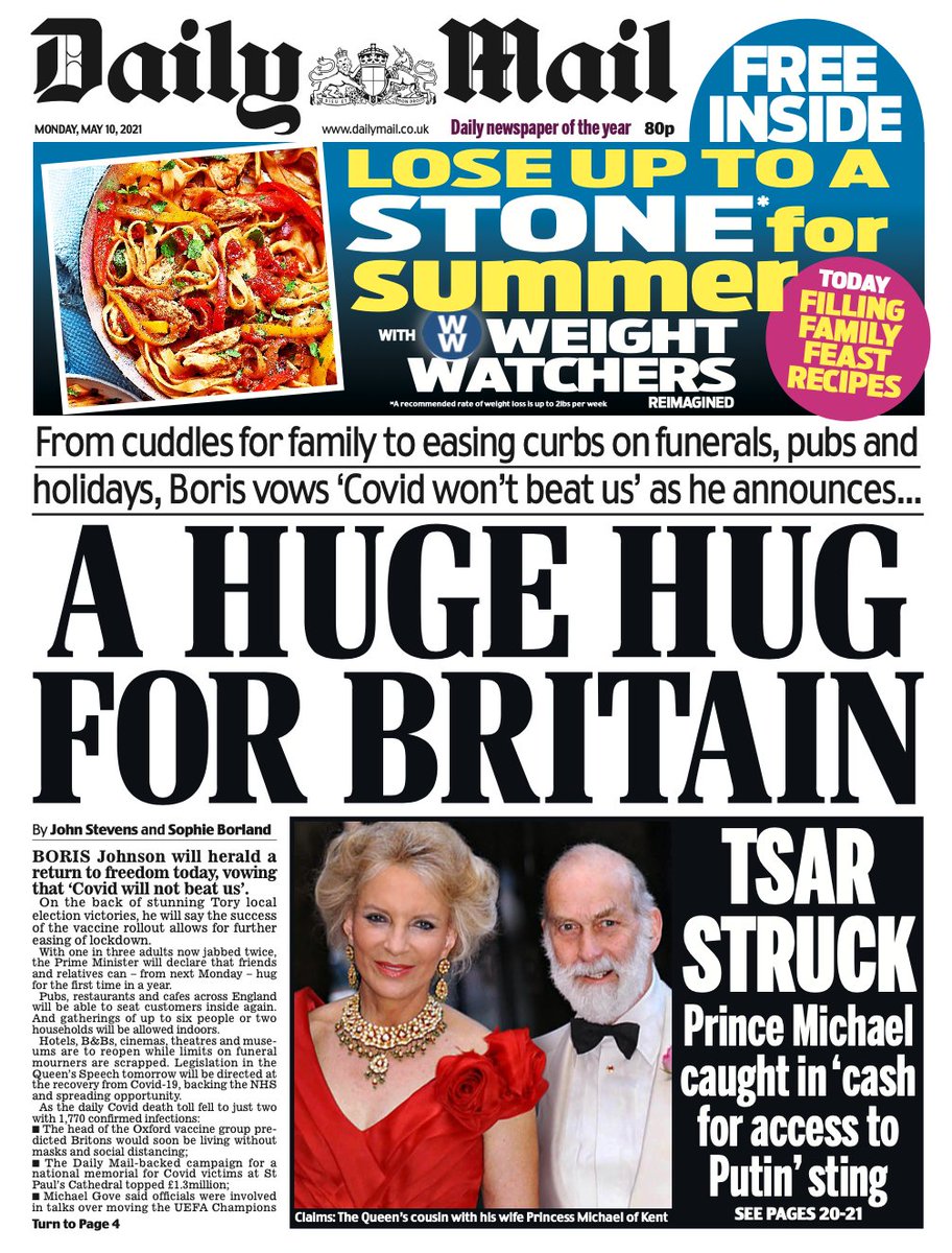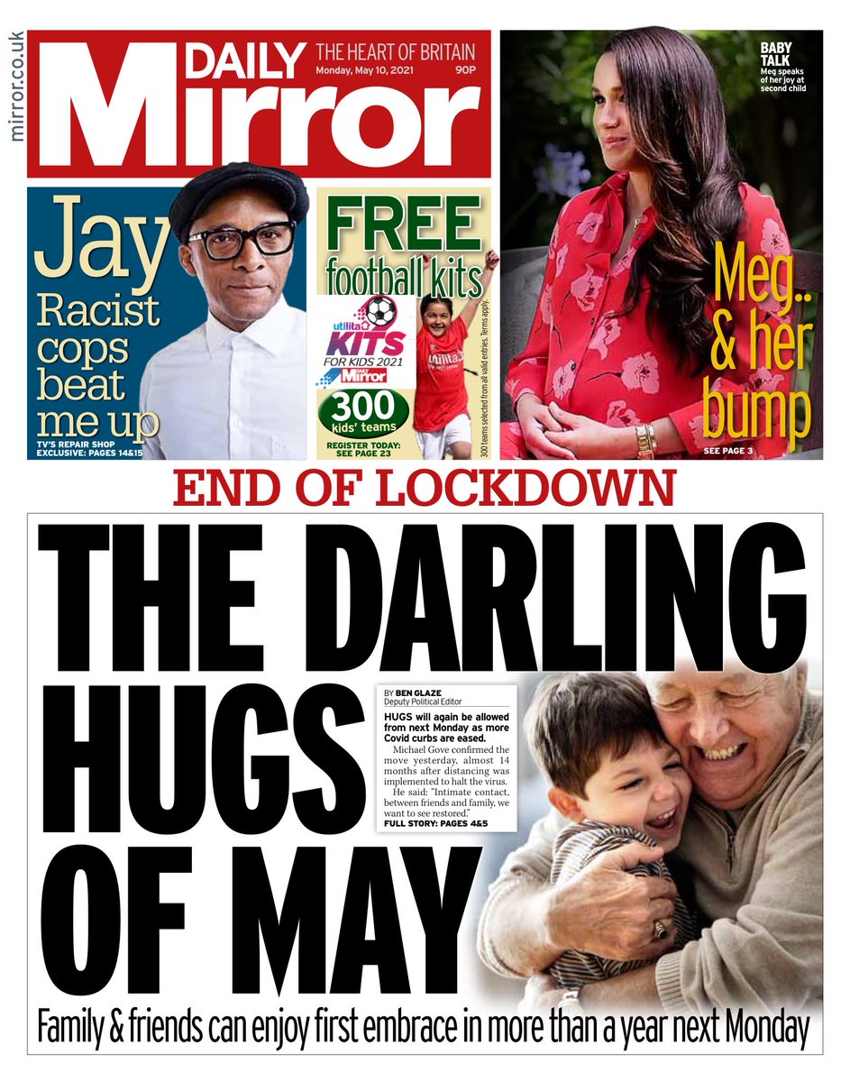 Metro leads with the news that we will soon be allowed to hug each other, as coronavirus restrictions are set to be eased further.