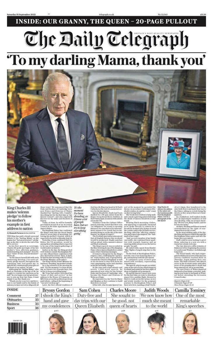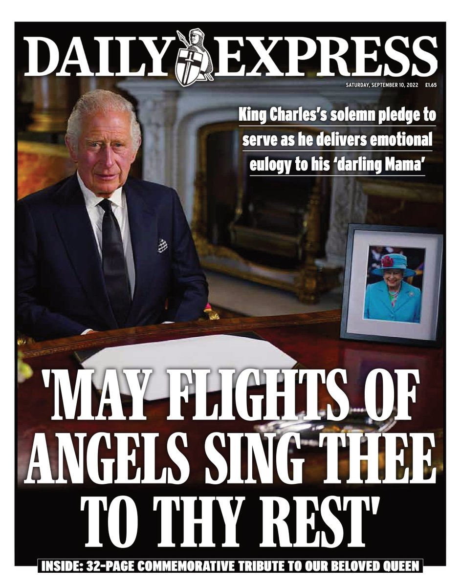 The Daily Mail’s front page shows King Charles fighting back tears as he spoke of his “loss beyond measure” following the death of the Queen.