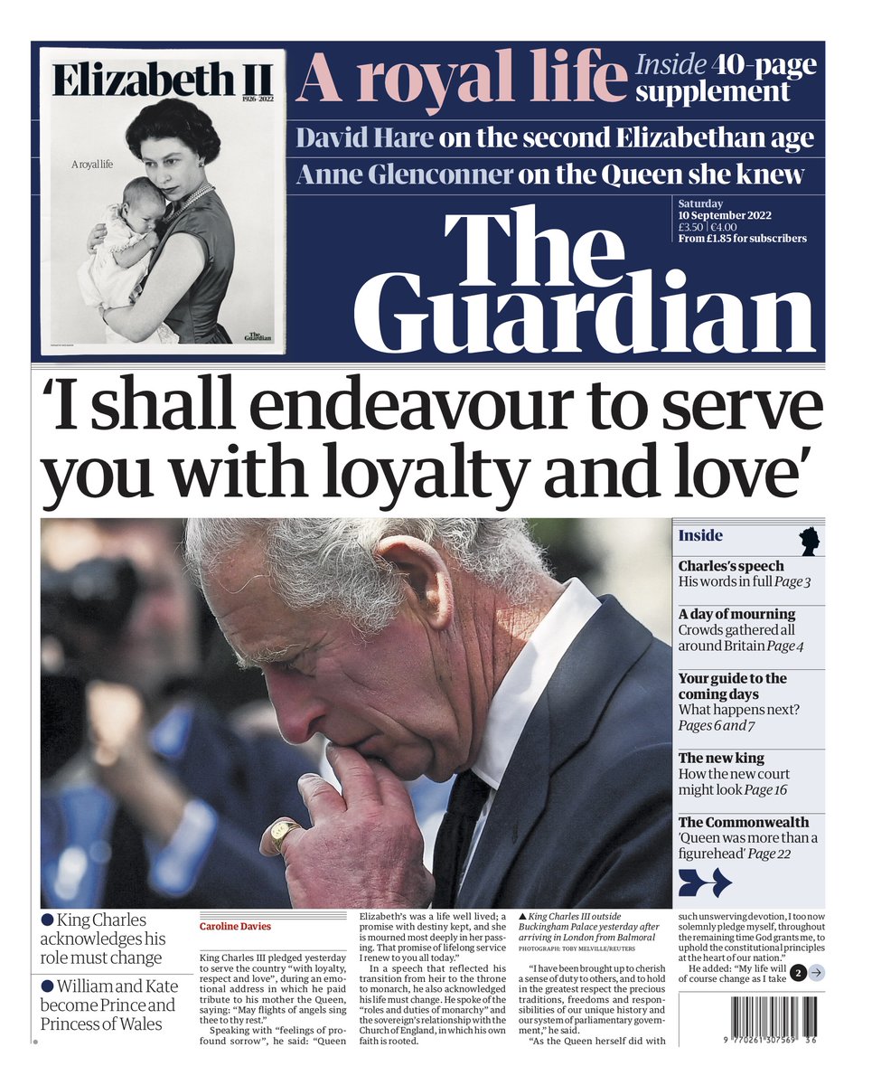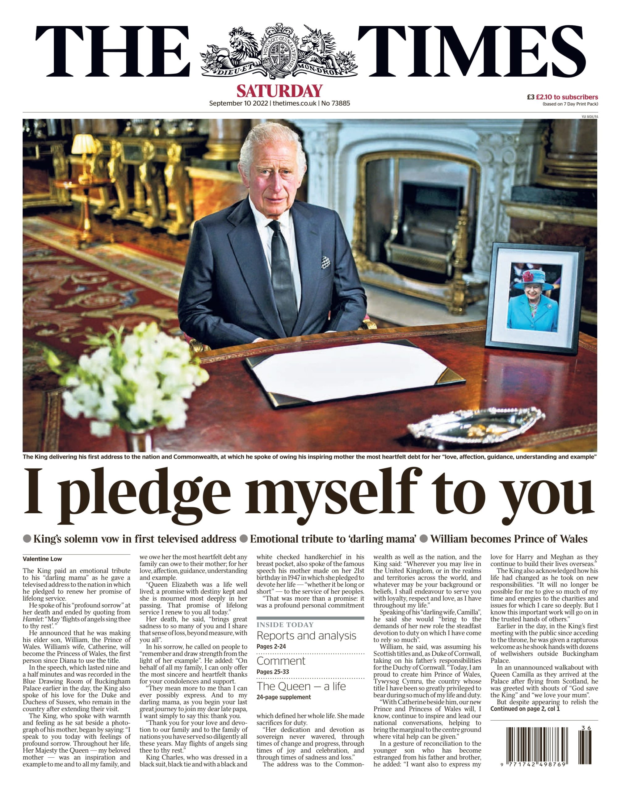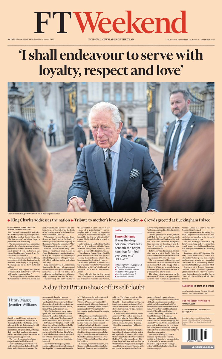 The Financial Times reports that King Charles has pledged to emulate his mother’s “lifelong service”.
