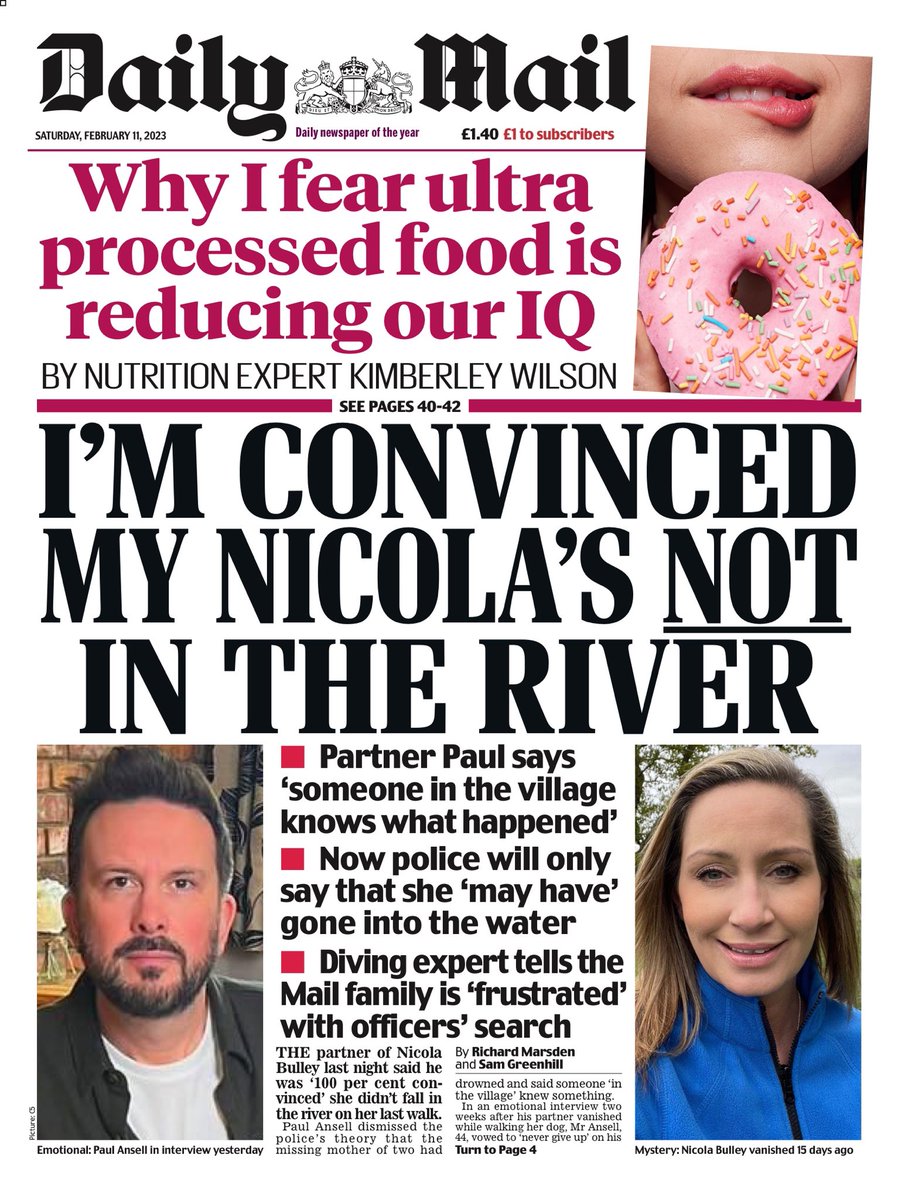 The Daily Telegraph quotes Nicola Bulley’s partner, Paul Ansell, who says she’s not in the Wyre.