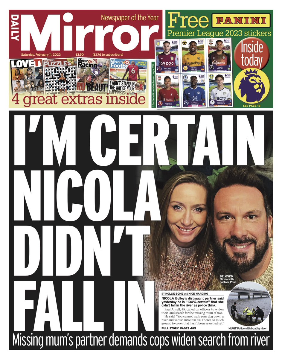 According to the Daily Mirror, Nicola Bulley’s distraught partner is “100% certain” she didn’t fall in the river as police believe.