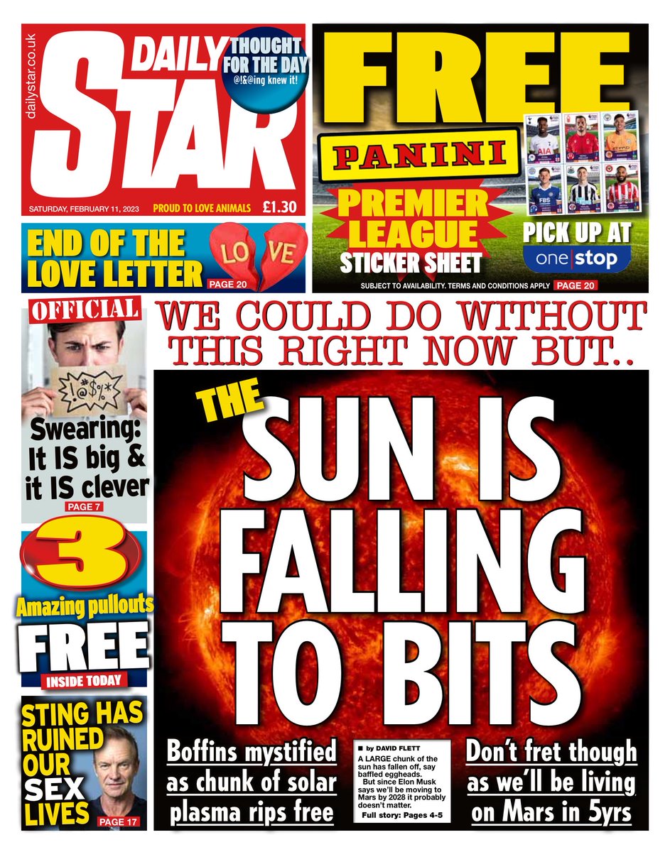 ‘Baffled eggheads’ claim a large chunk of the sun has fallen off, according to The Daily Star.