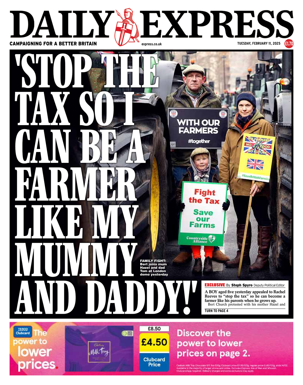 A boy joined a protest against a proposed tax, urging a leading figure to ensure farming remains viable for future generations so he can follow in his parents’ footsteps.