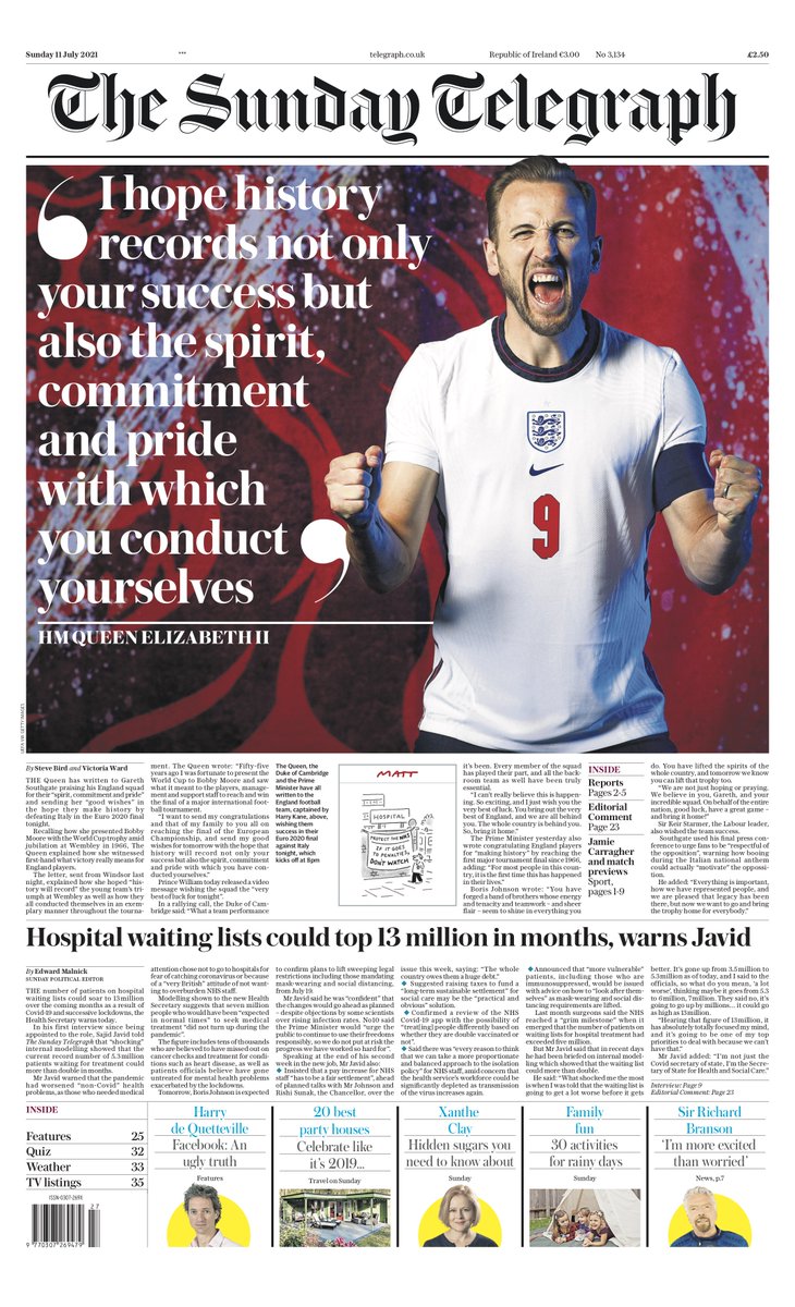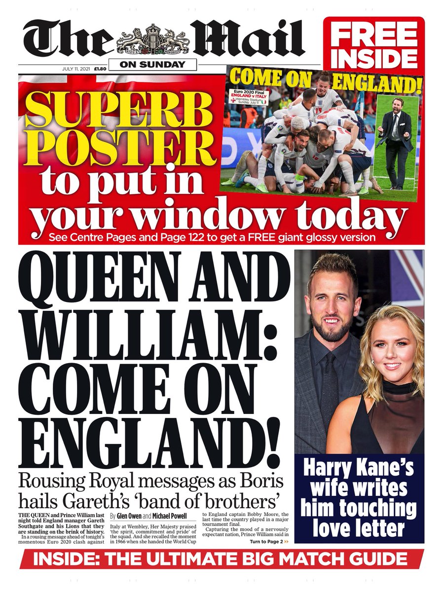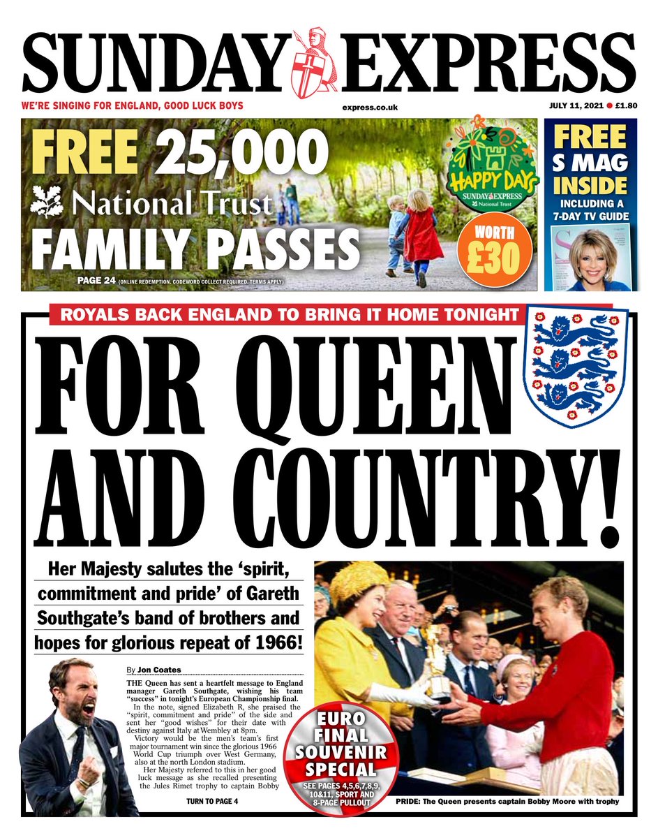 The Queen has written to Gareth Southgate and his team to wish them good luck in their historic Euro 2020 final against Italy on Sunday, reports the Sunday Express.
