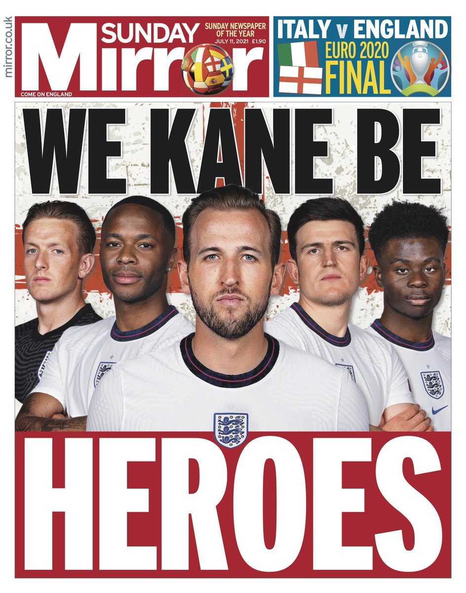 The Sunday Mirror’s front page is a play on the David Bowie song with the headline: “We Kane be heroes”.