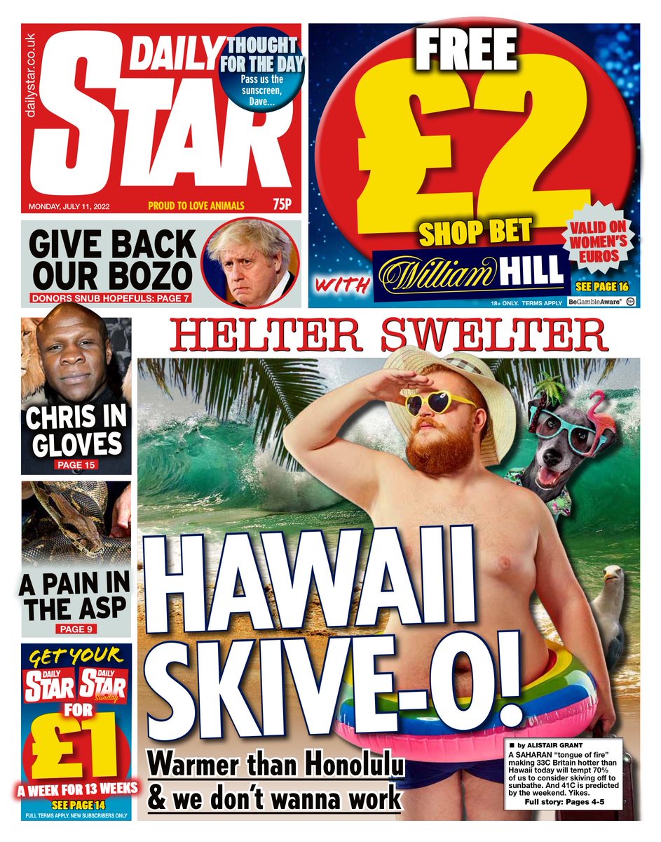 The Daily Star reports a Saharan “tongue of fire” is making Britain hotter than Hawaii, tempting 70% of people to skip work.
