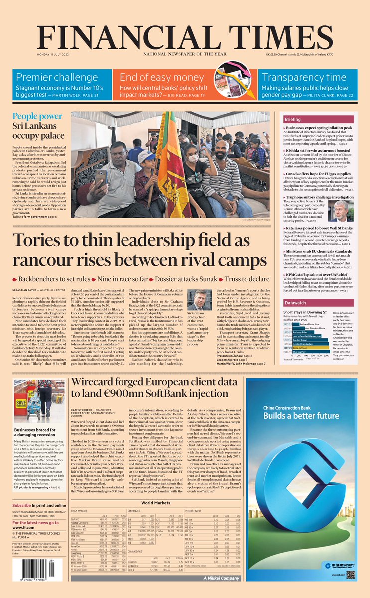 Financial Times reports that senior Conservative party figures are plotting to quickly narrow the field of candidates to succeed Boris Johnson.
