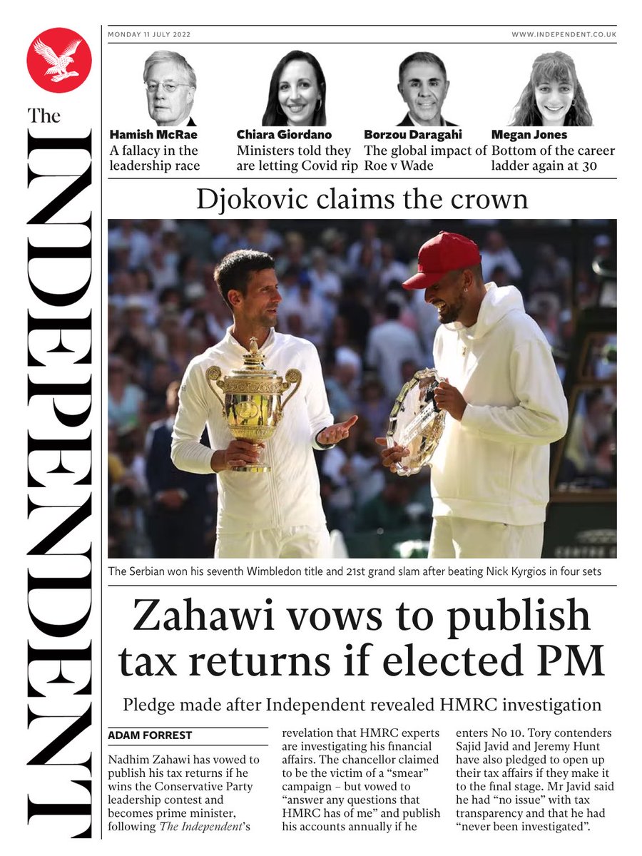 Nadhim Zahawi has vowed to publish his tax returns if he wins the Conservative Party leadership race, according to The Independent.