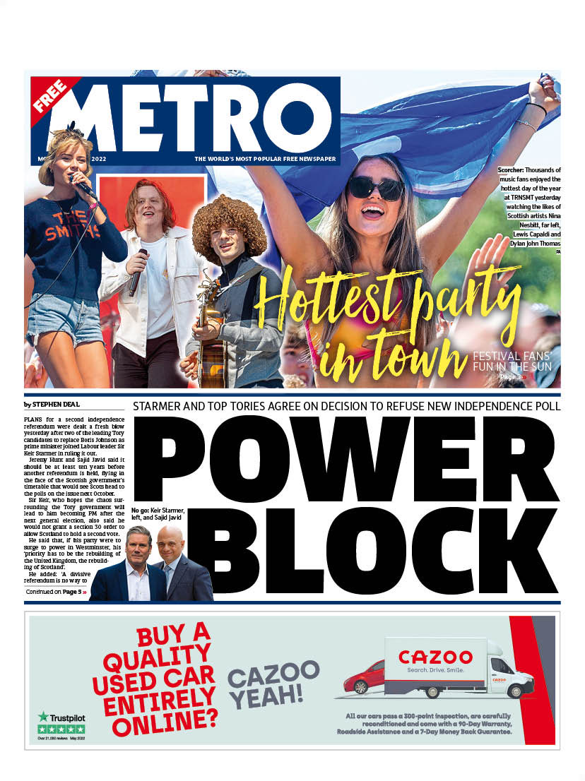 The Metro also covers the Conservative Party leadership race.