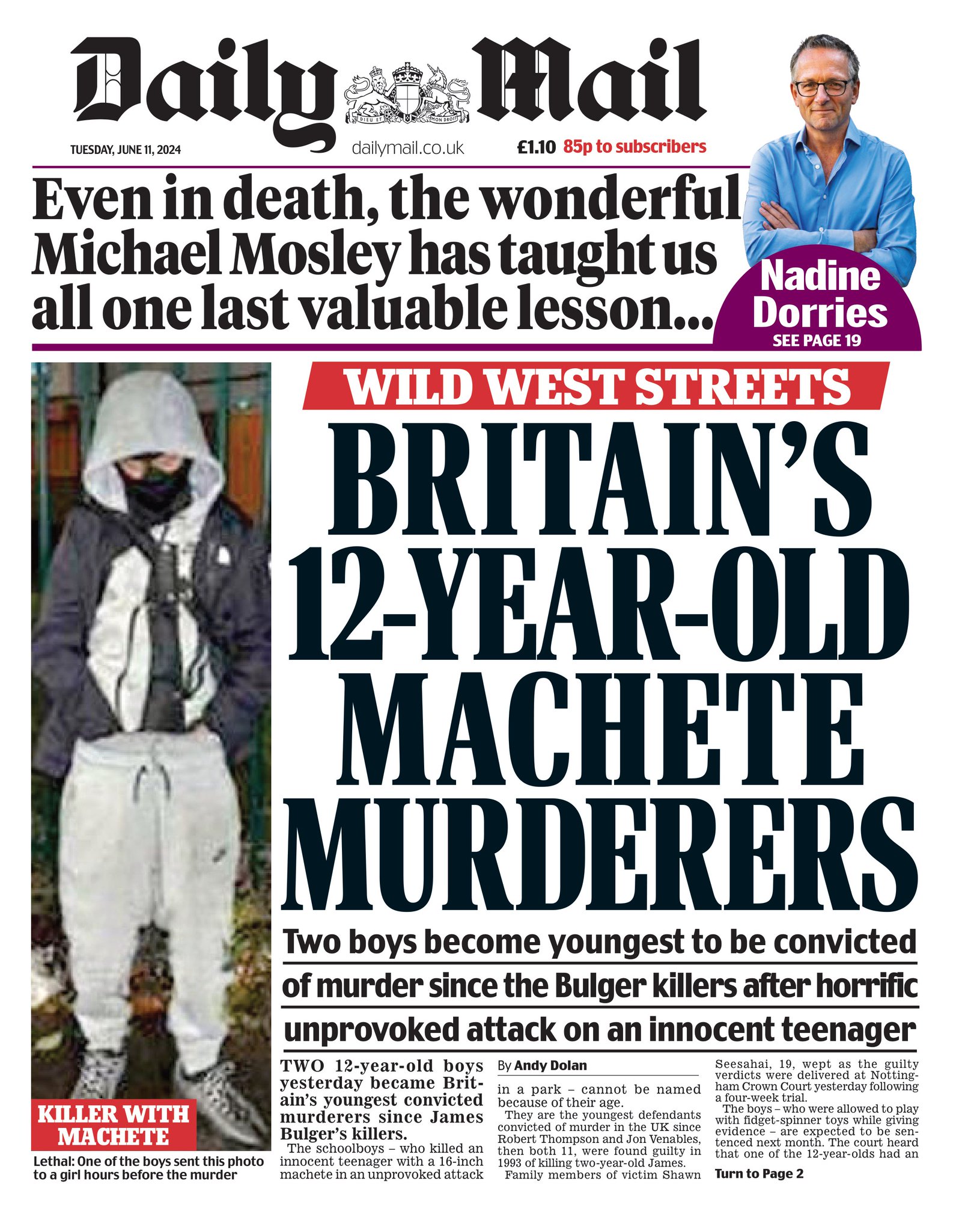 Two 12-year-old boys were convicted of murder after fatally attacking an innocent teenager with a machete in an unprovoked assault.