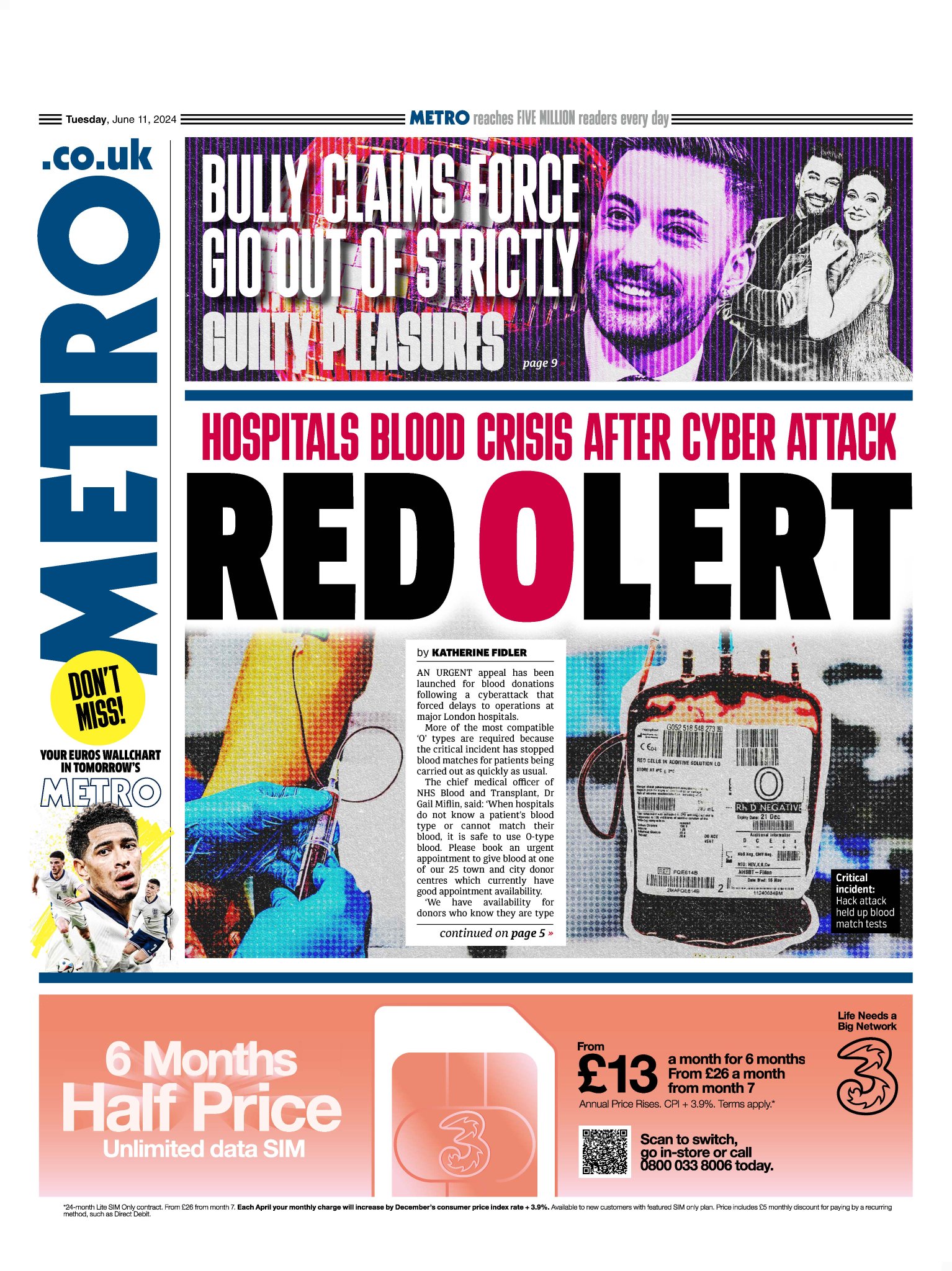 An urgent appeal for blood donations has been launched following a cyber attack that delayed operations at major London hospitals, resulting in a critical shortage of the most compatible blood types.