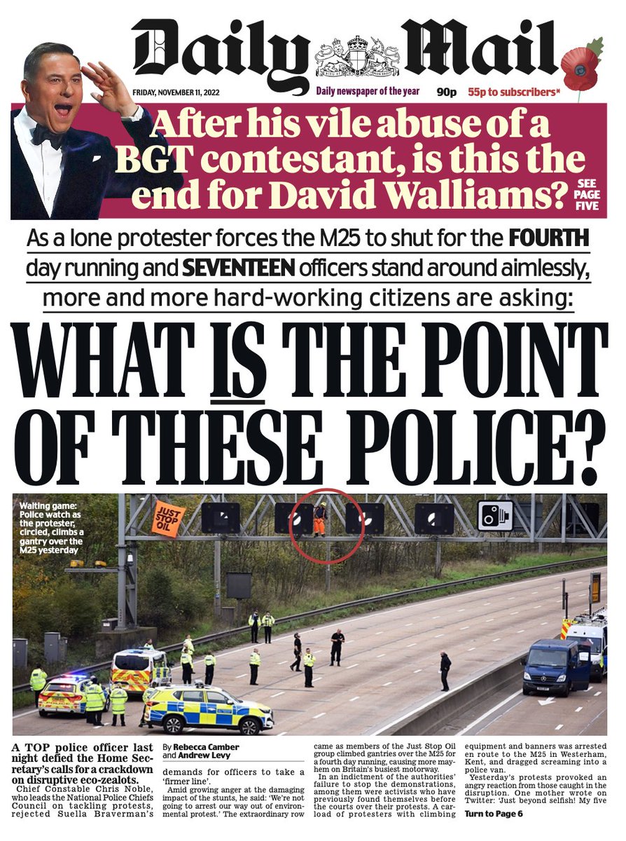 After a fourth day of disruption on the M25, the Daily Mail says the police aren’t doing enough to end the protests.