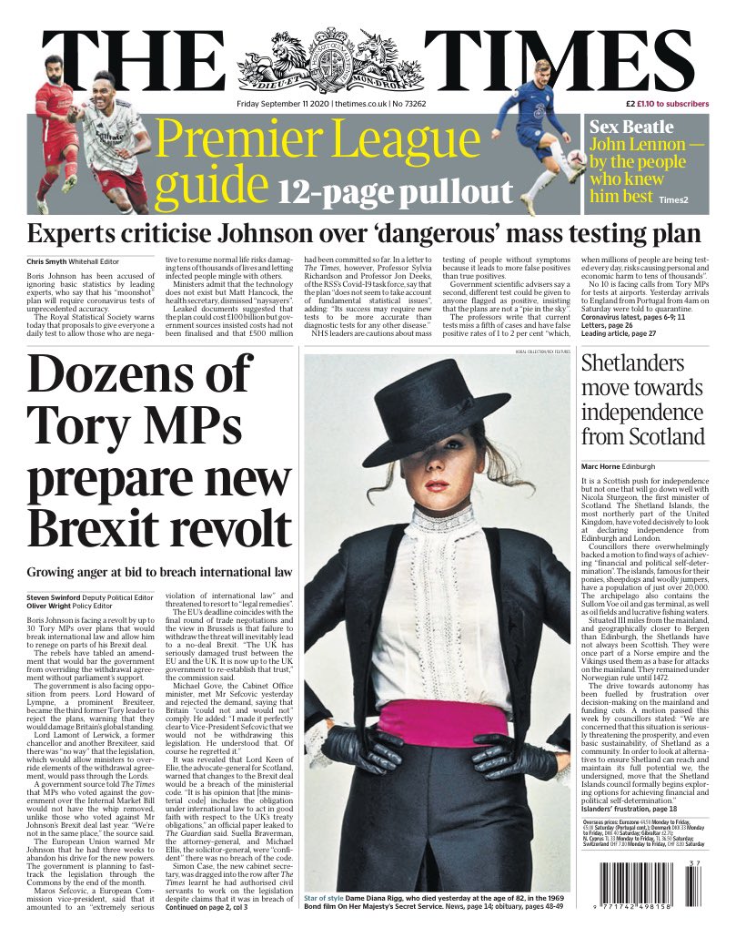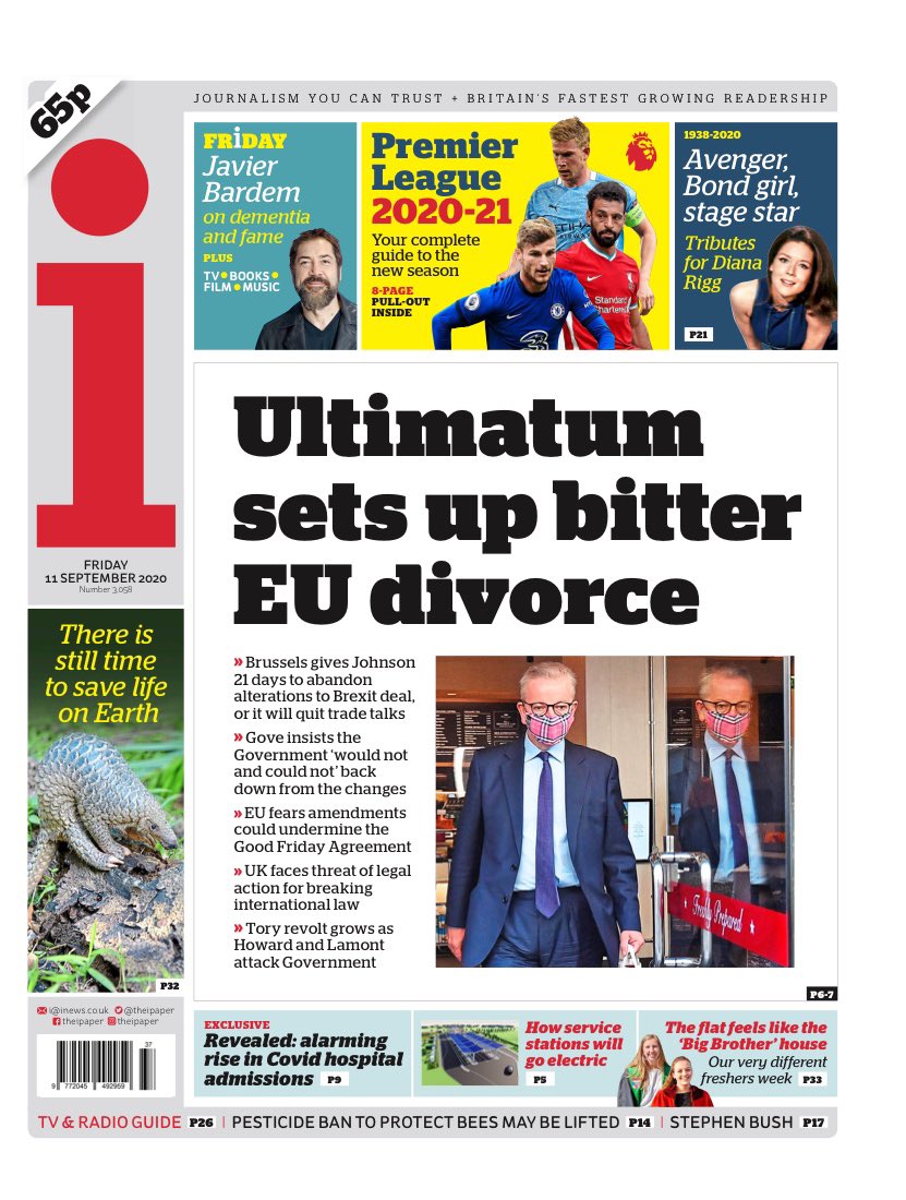The i says that the EU’s ultimatum over the government’s decision to break international law and override the withdrawal agreement, sets up a bitter divorce from the European Union.