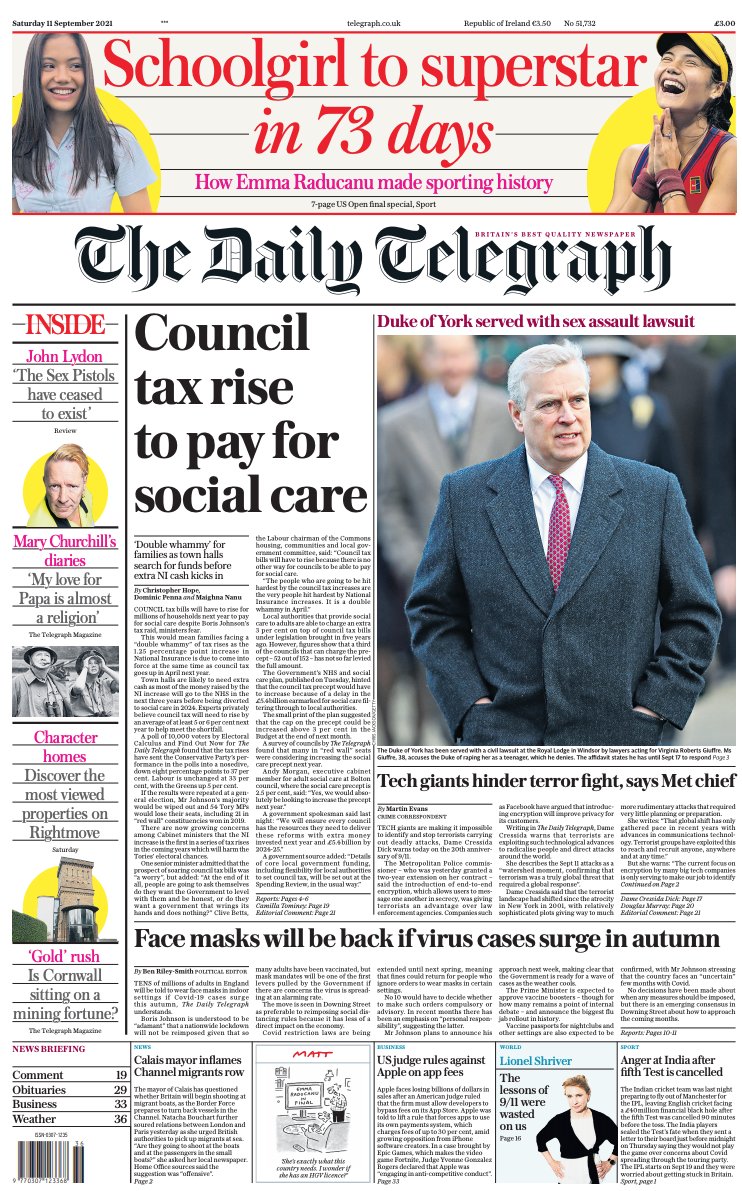Council tax bills will rise for millions of people to pay for social care, The Daily Telegraph reports.