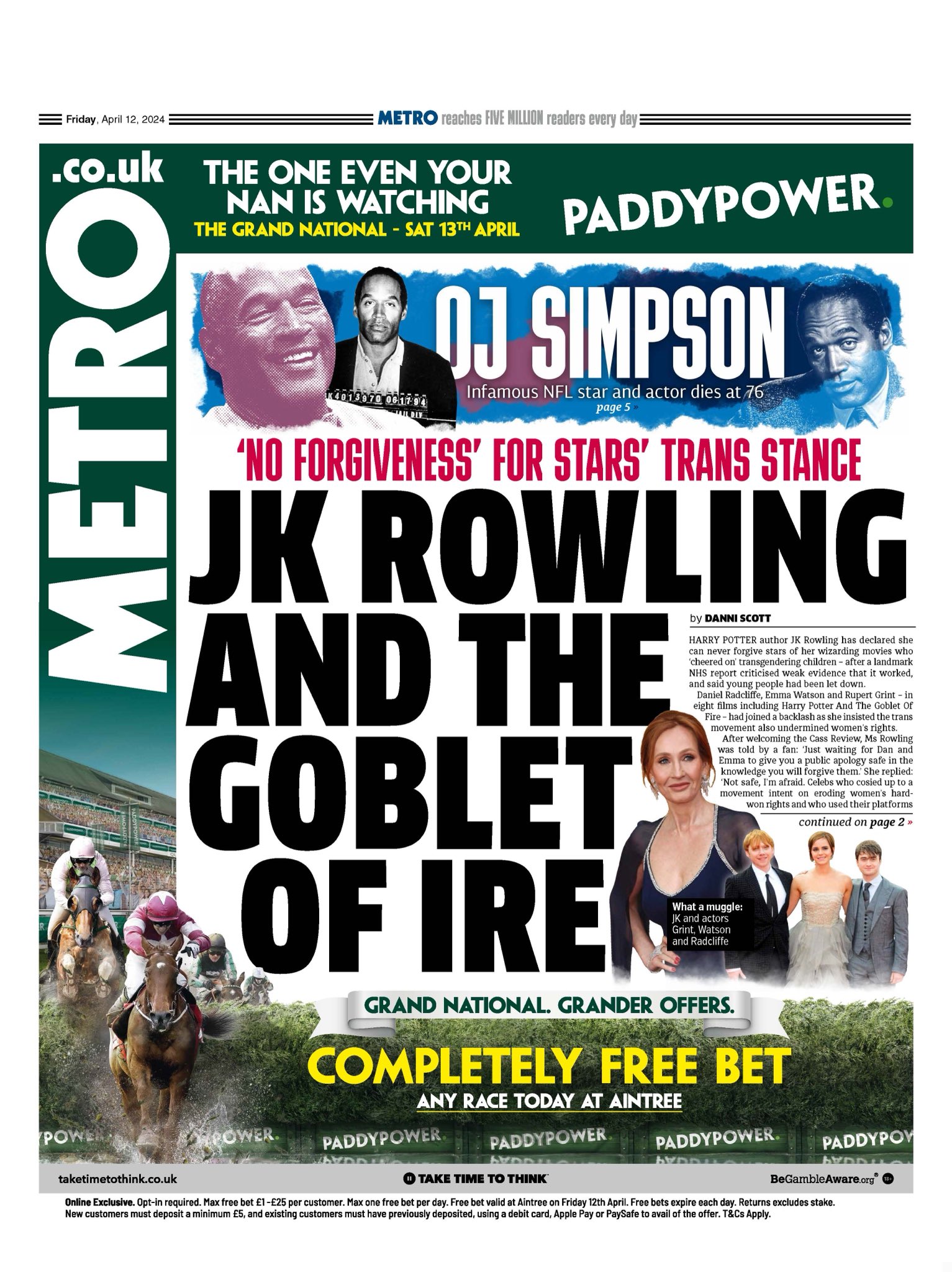The Metro highlights JK Rowling’s inability to forgive Harry Potter stars for supporting transgender children.