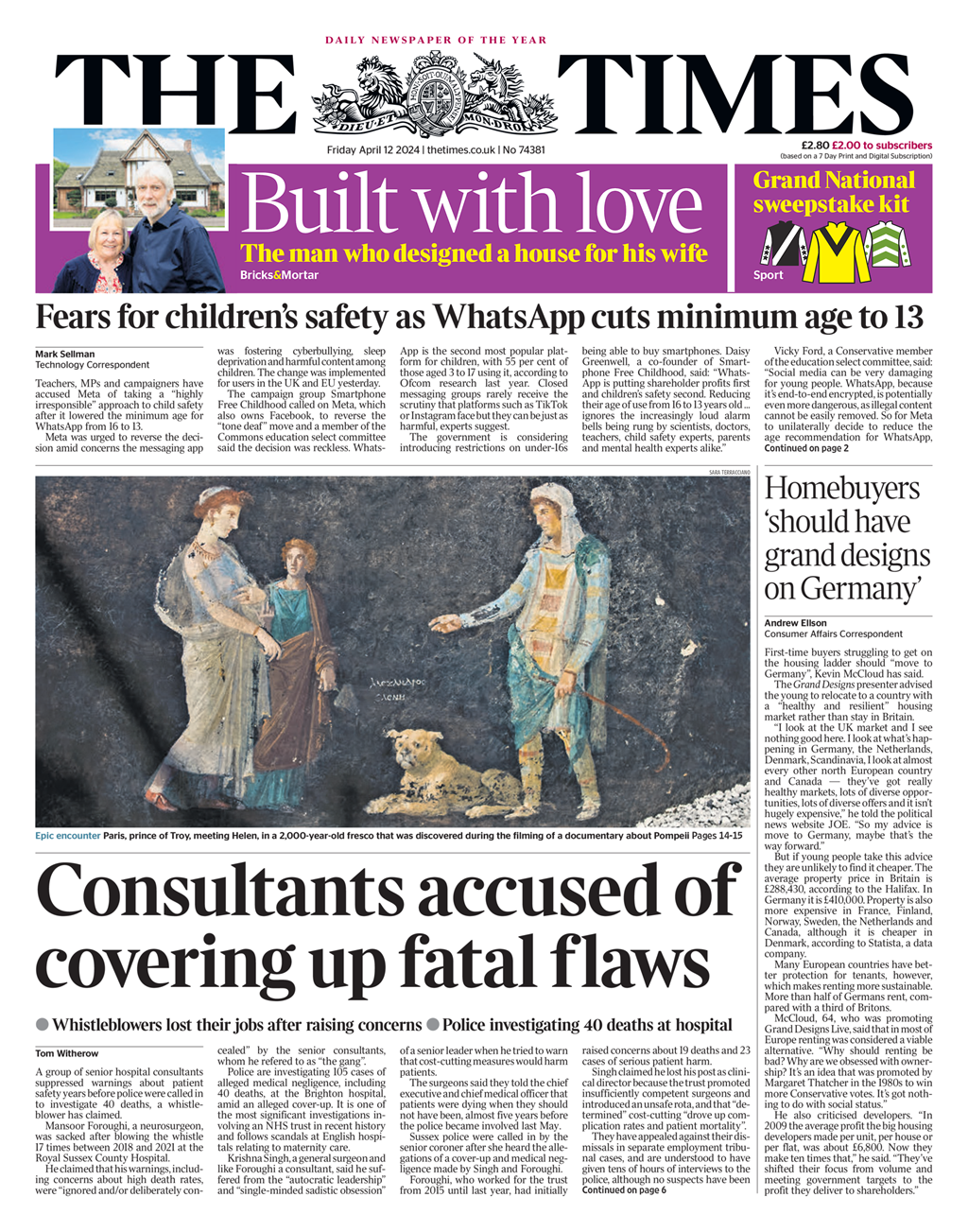 Daily Telegraph Front Page 12th of April 2024