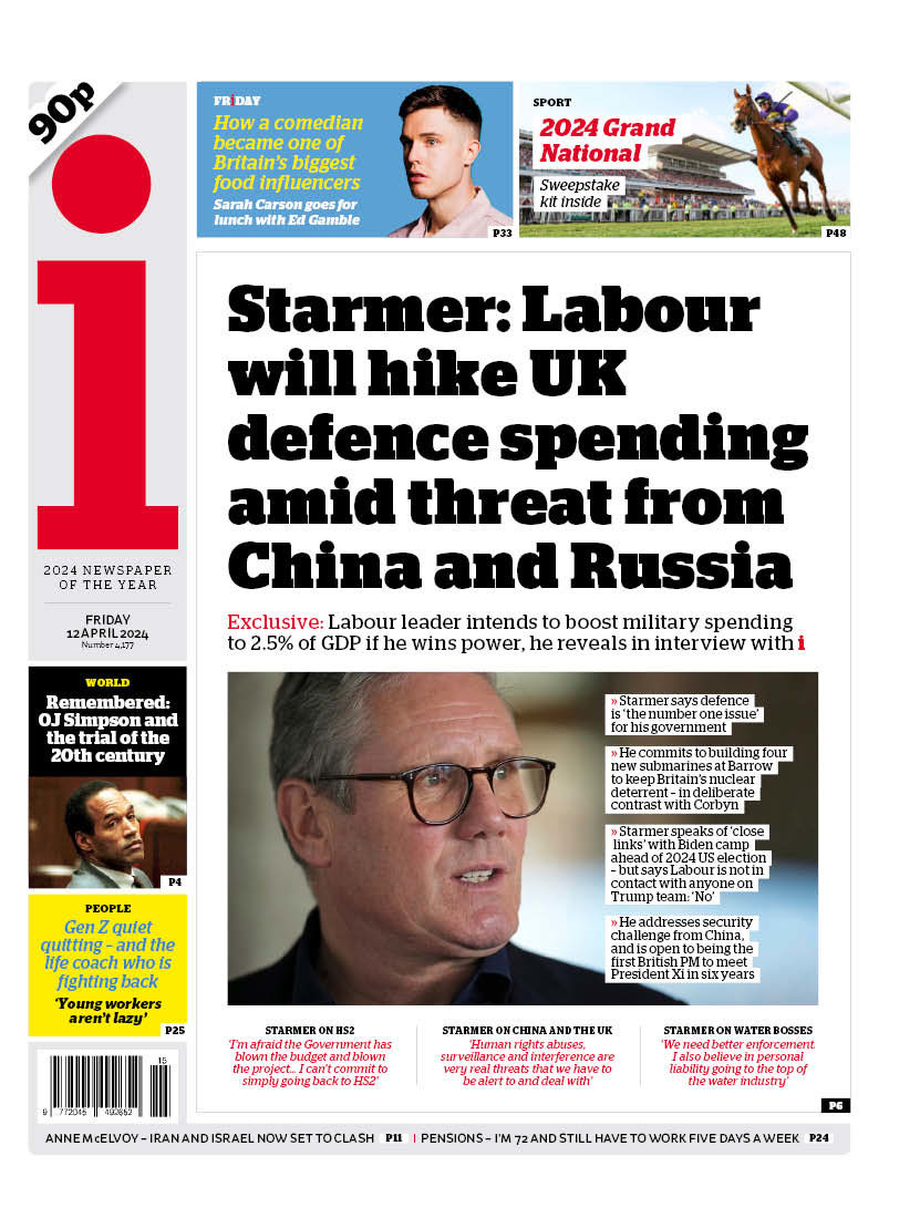 Sir Keir Starmer vows to raise defence funds amid China and Russia threats, as reported by the i.