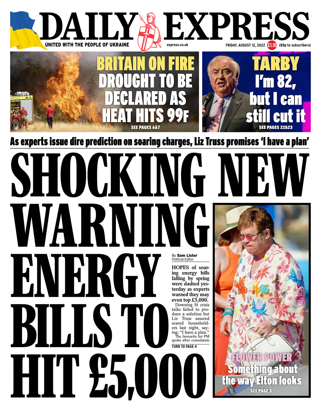 There is a warning in The Daily Express that energy bills could reach £5,000.
