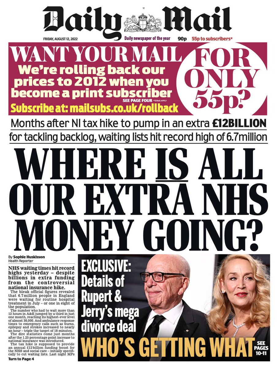After the April national insurance hike, the Daily Mail asks why NHS waiting lists have not improved.