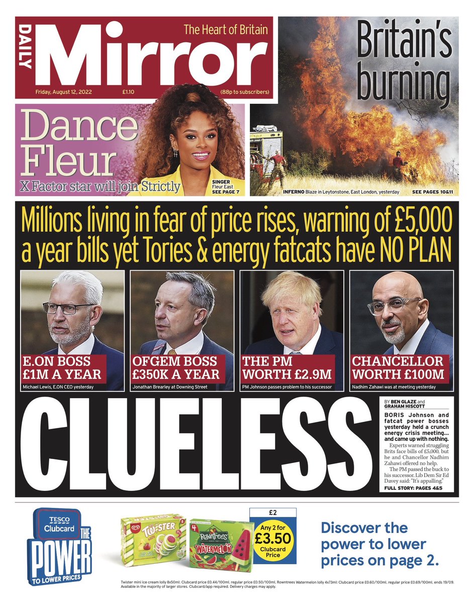 According to the Daily Mirror, the prime minister, chancellor, and head of Ofgem and E.ON are clueless for holding a meeting today without announcing new measures to reduce energy costs.