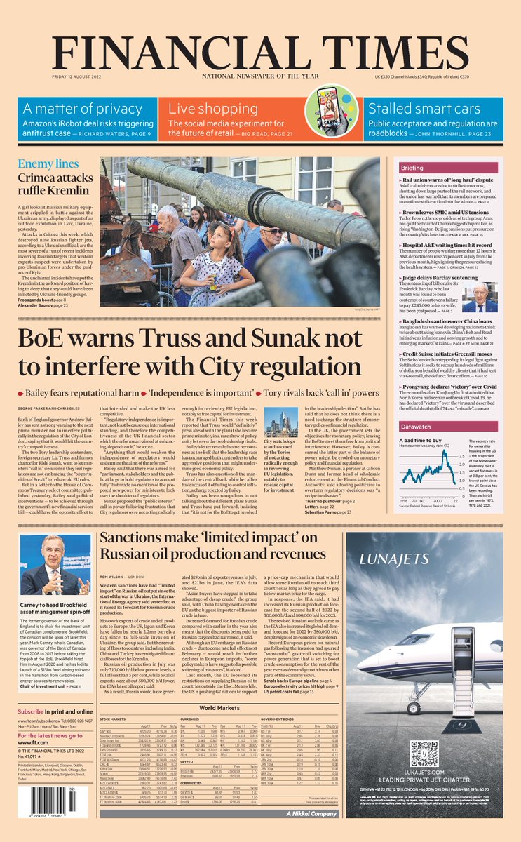 Liz Truss and Rishi Sunak have been warned against political interference in the City of London by Bank of England Governor Andrew Bailey.
