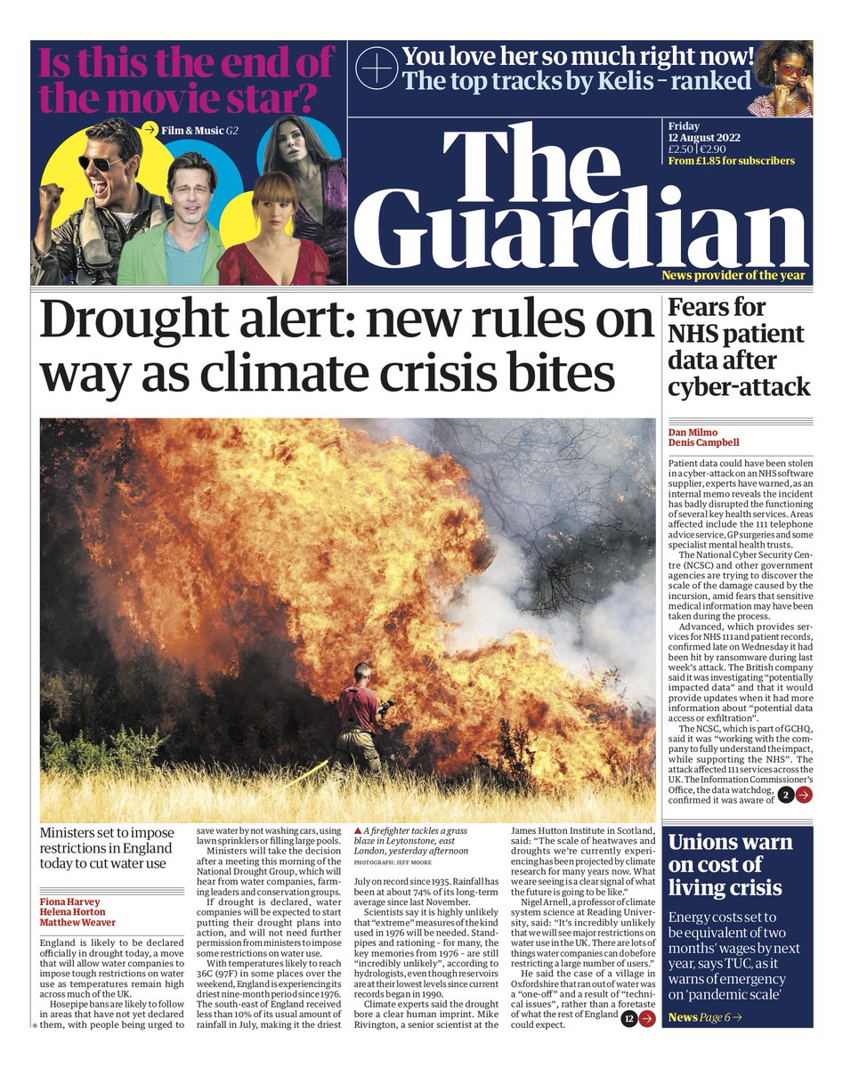 The Guardian reports that more droughts are likely to be declared tomorrow and more restrictions will be introduced “as climate crisis bites”.