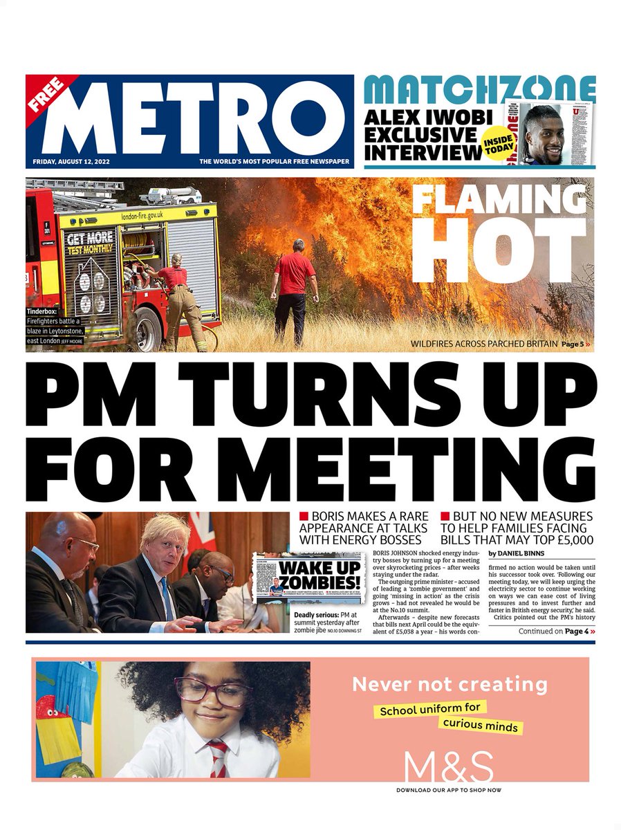 Despite Boris Johnson’s presence at a meeting with energy bosses, the Metro reports that no new measures have been announced.