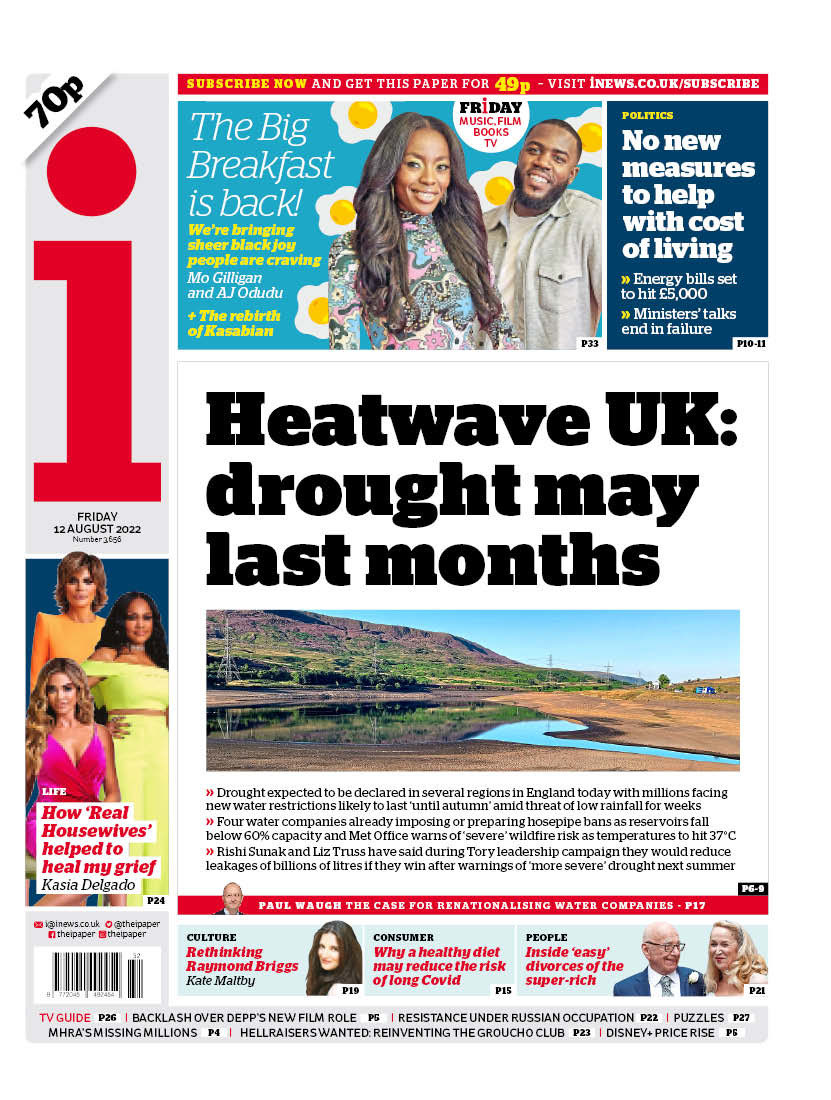The i reports that a drought could last “many months” and that water restrictions will likely last until autumn.